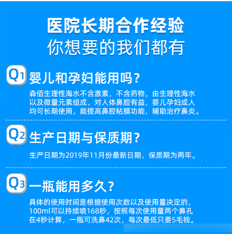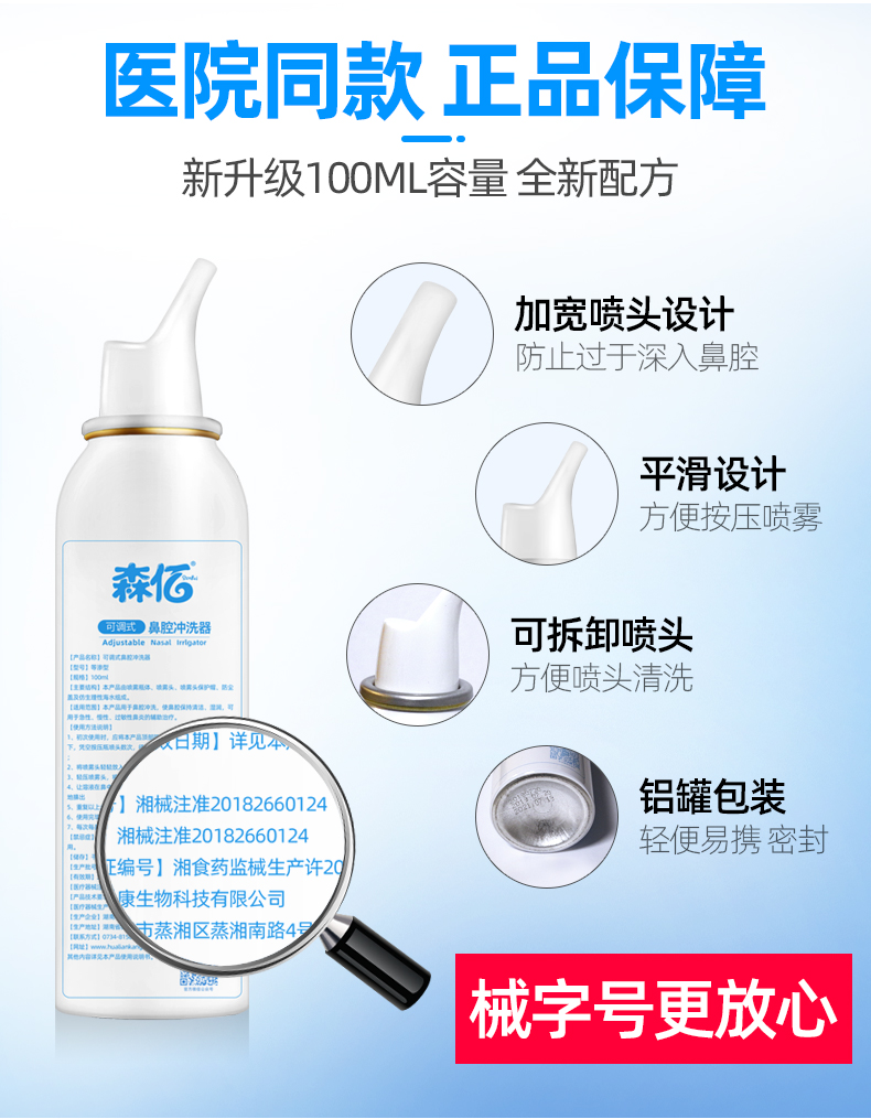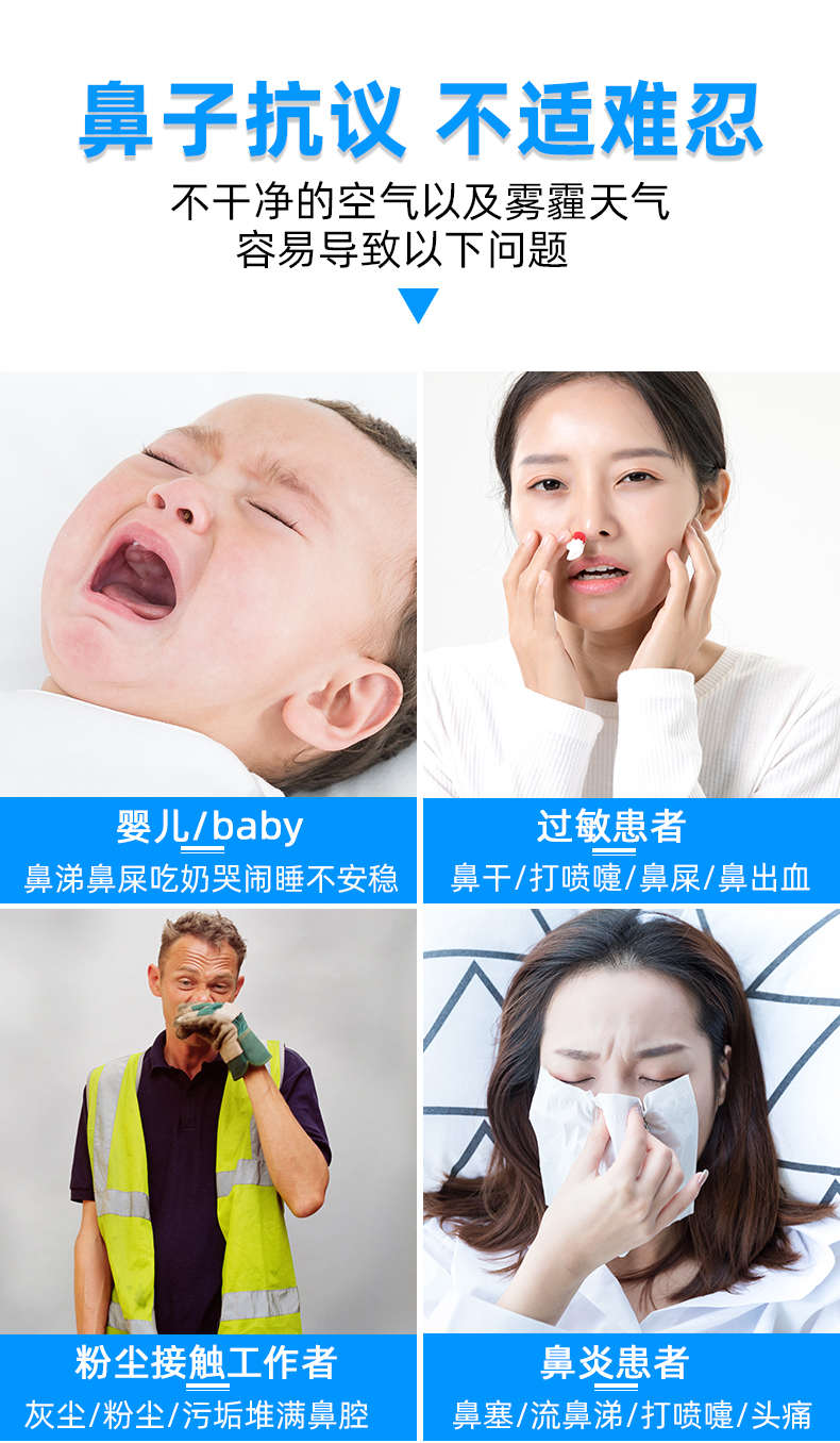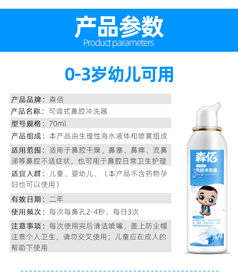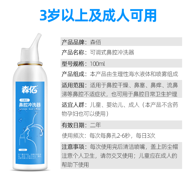 温和不刺激,适用于鼻腔干燥,鼻腔创面清洗,独特的圆润无锐角喷嘴,喷雾柔和,不呛鼻,不伤鼻腔,宝宝使用更舒适