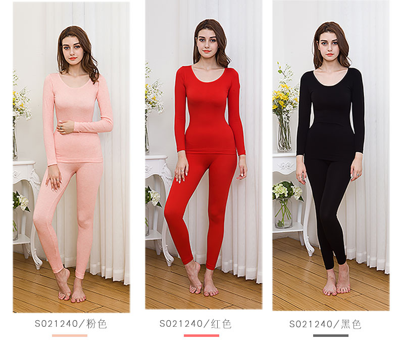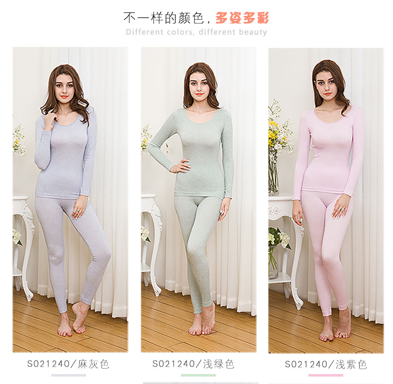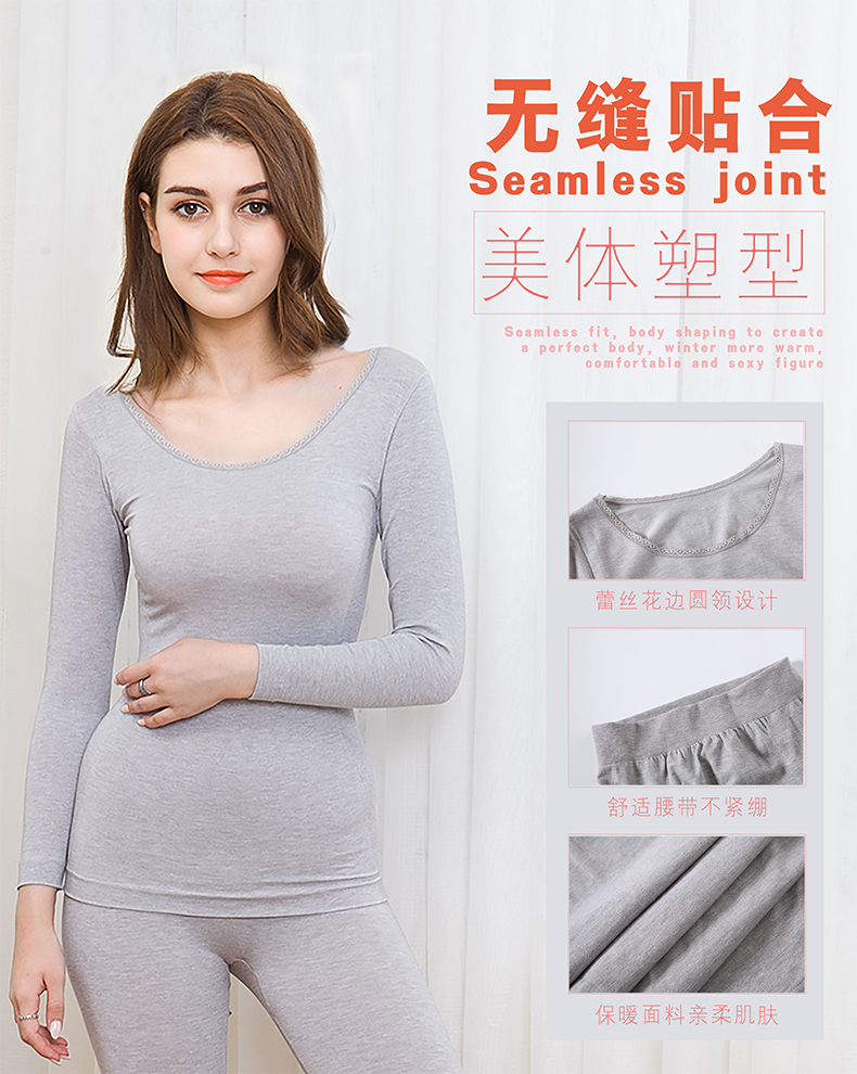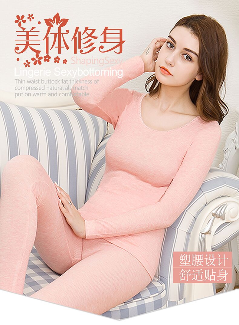 保暖内衣女薄款套装,圆领基础打底棉毛衫紧身,性感美体秋衣秋裤女冬