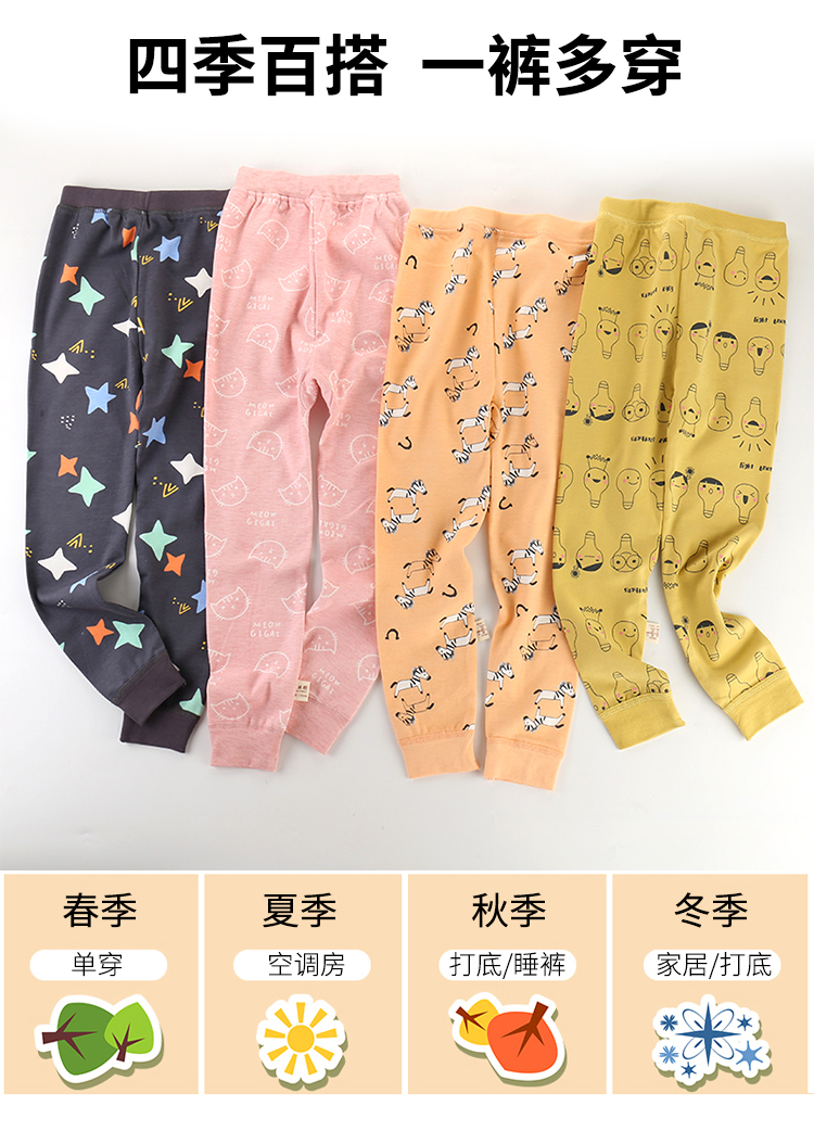 优米熊儿童单条秋裤3纯棉6男女童线裤宝宝棉毛裤9大童衬裤12-15岁
