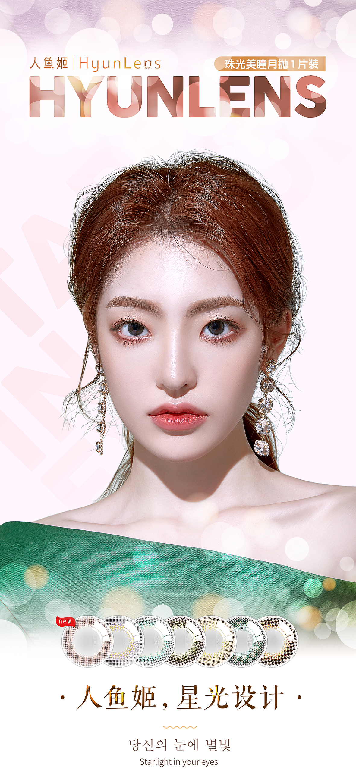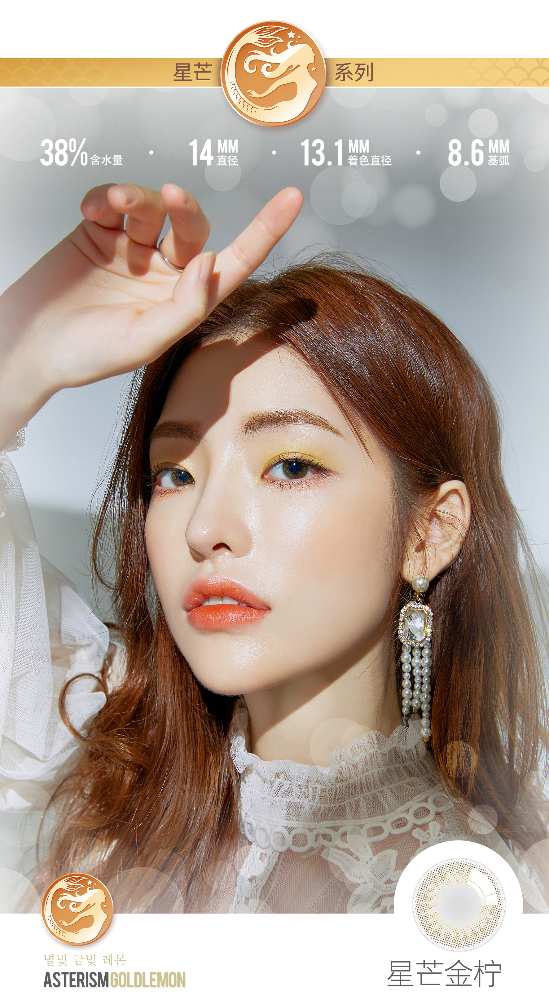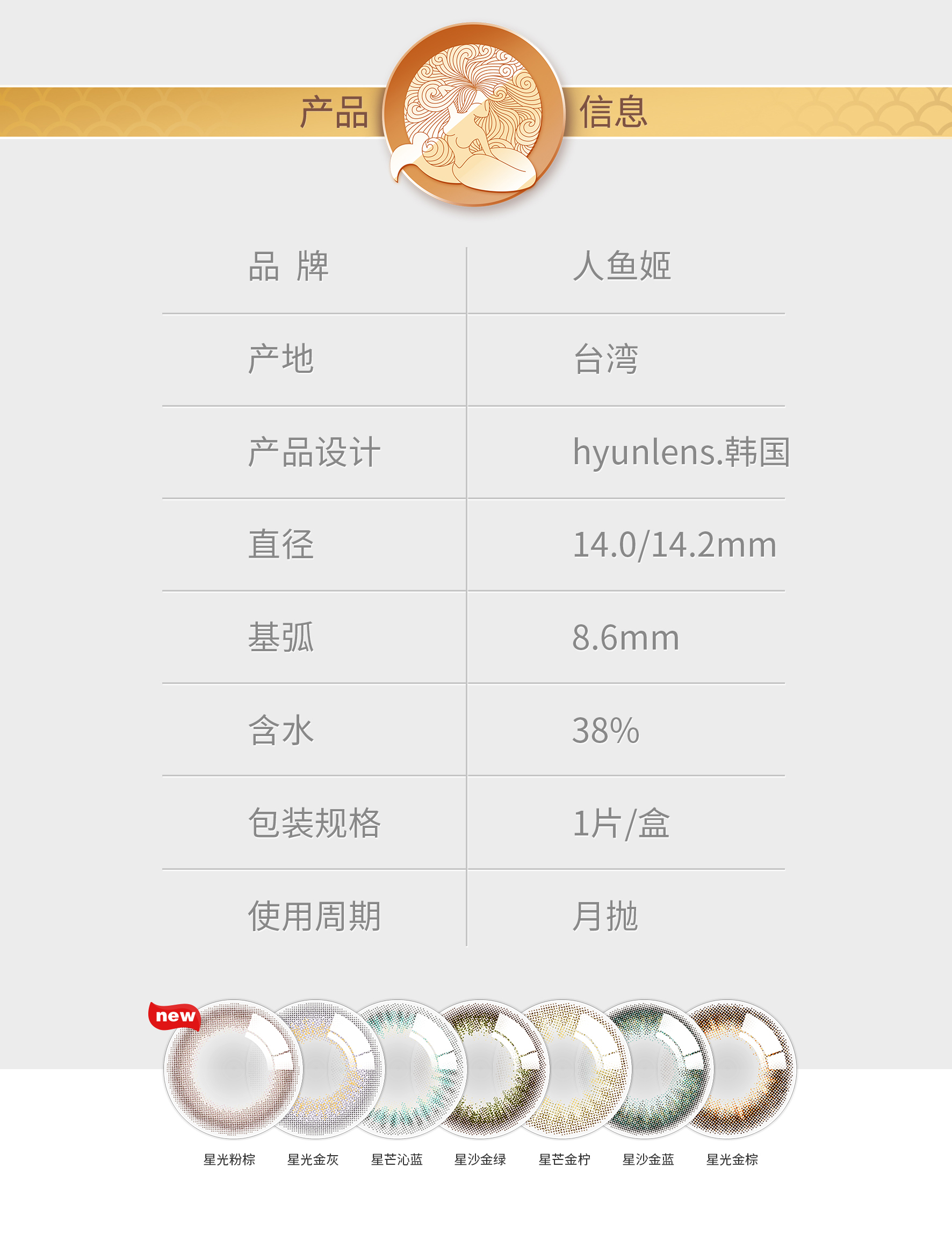 韩国人鱼姬珠光美瞳月抛1片棕色蓝色小直径混血网红款隐形眼镜
