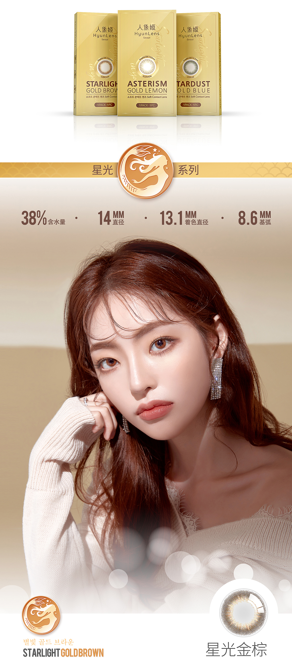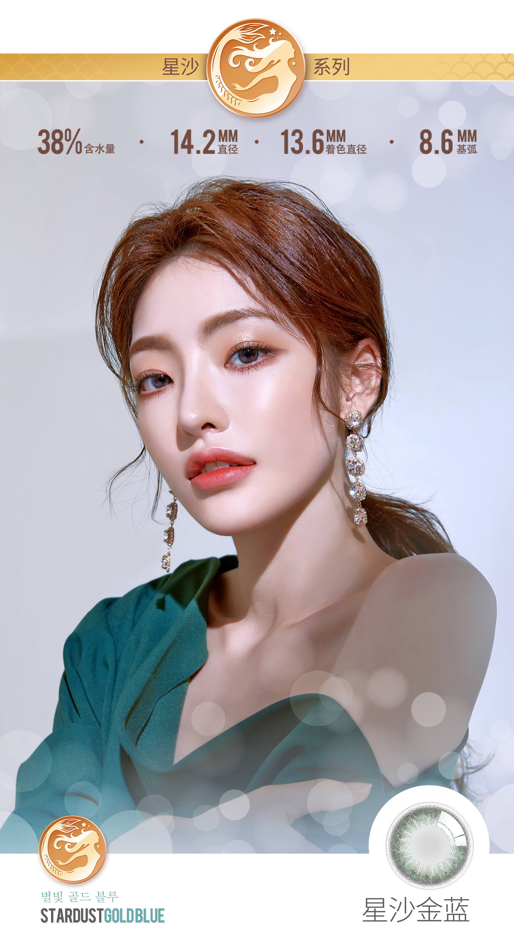 大药房直售,星沙金蓝超级好看,含水量38%不易眼干,有黎雾感,上眼超级自然,美丽的同时也给你安全感!【买2送精美包镜盒,买4送人鱼姬自拍灯】