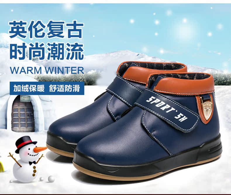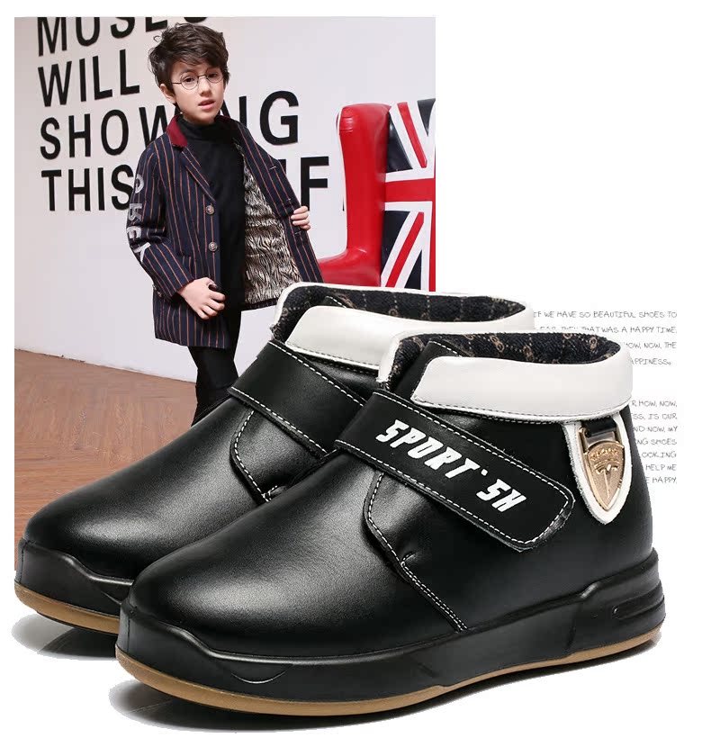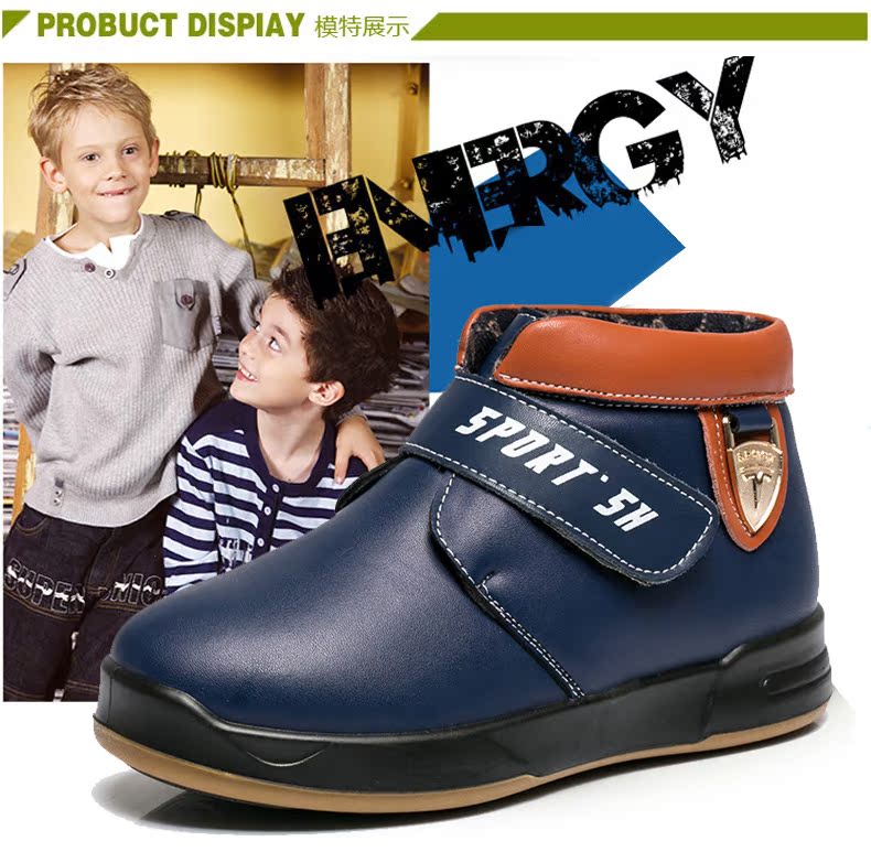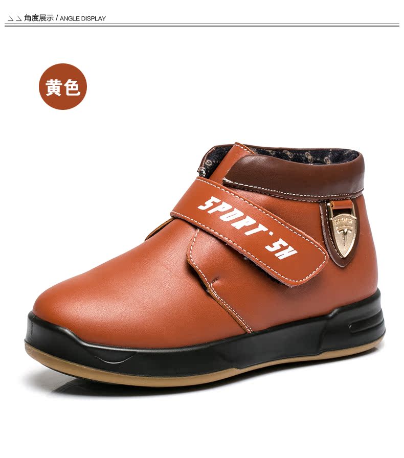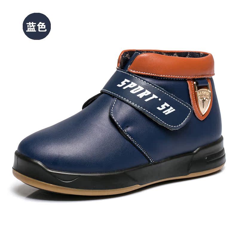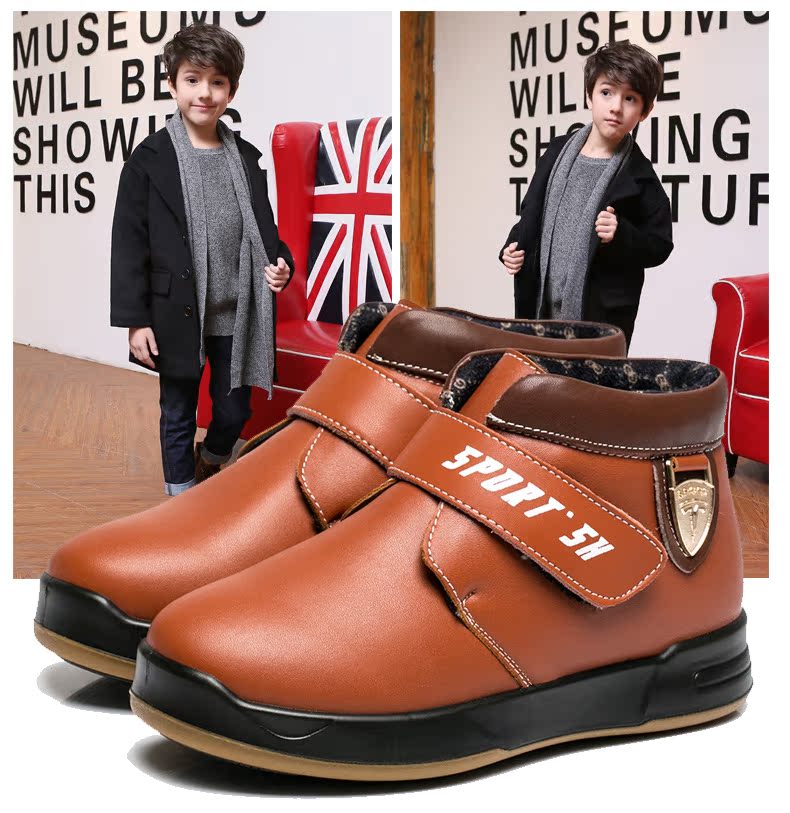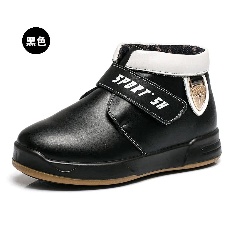 2019秋冬季新款牛皮男童棉鞋儿童保暖鞋男中大童加绒加厚短靴皮鞋