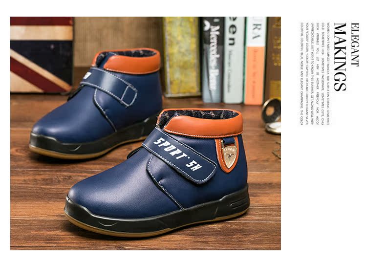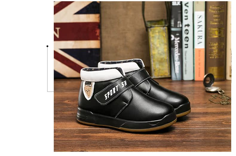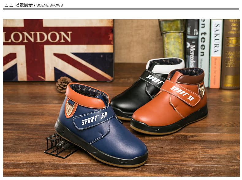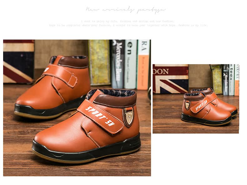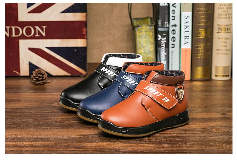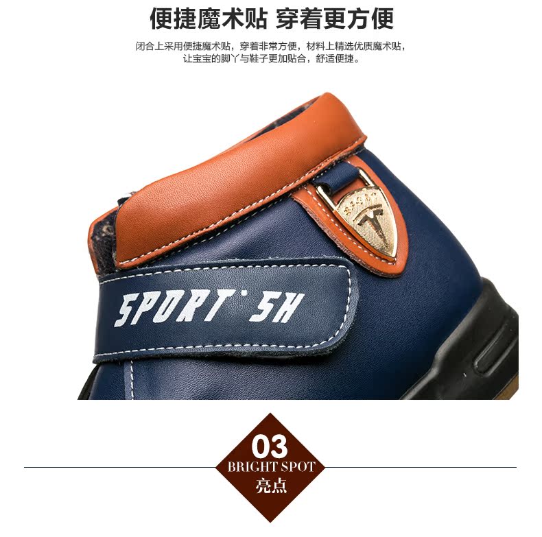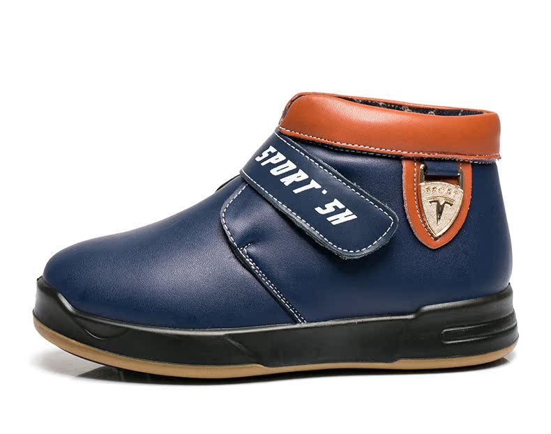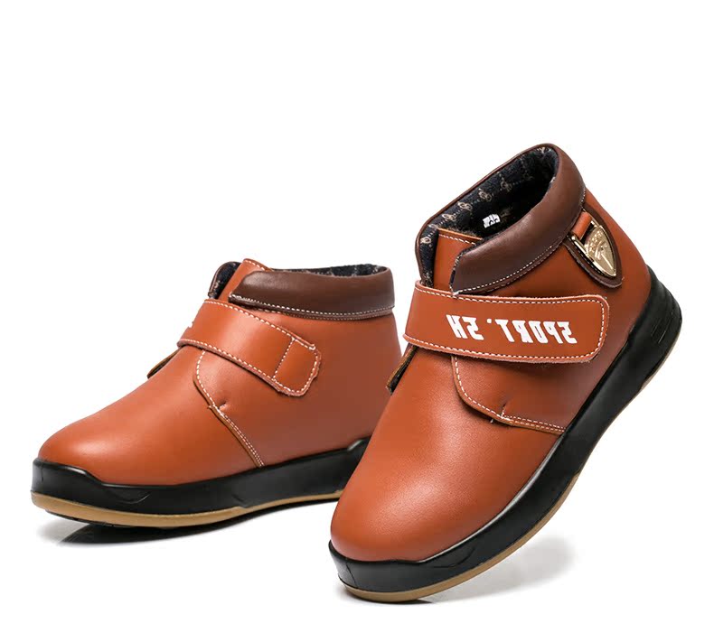 2019秋冬季新款牛皮男童棉鞋儿童保暖鞋男中大童加绒加厚短靴皮鞋