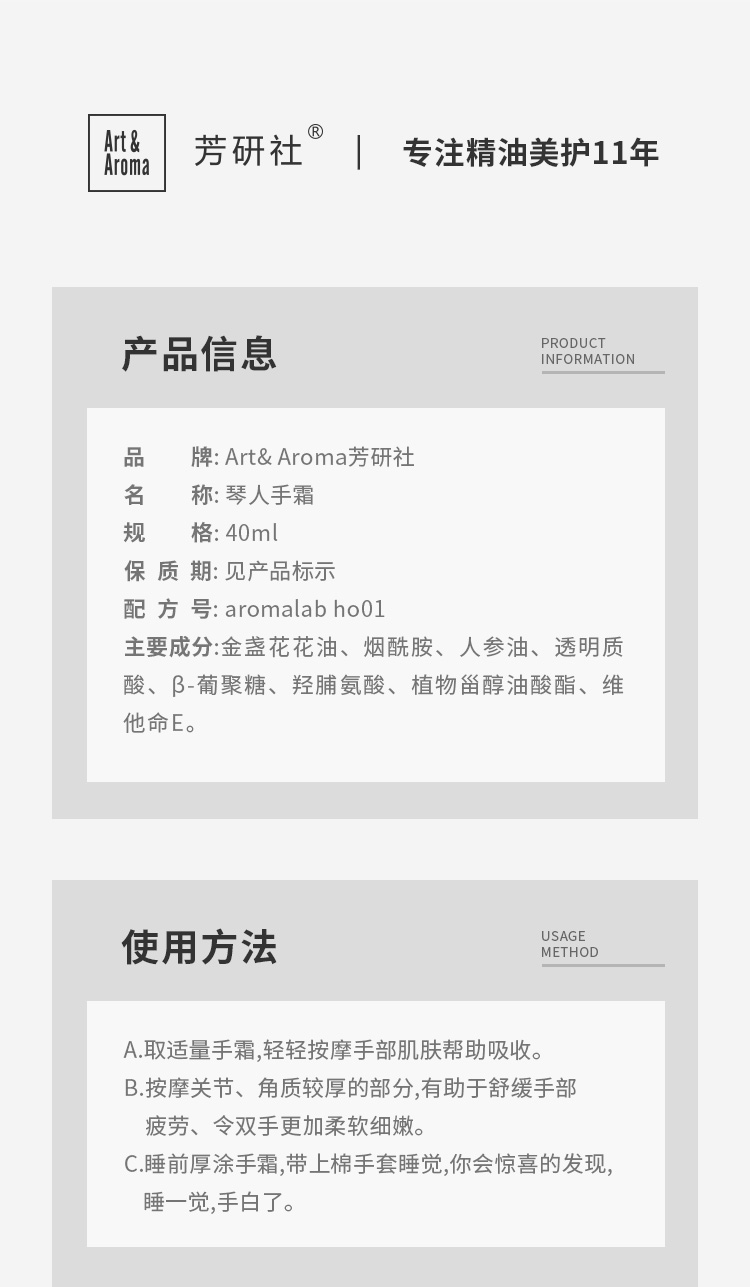 芳研社琴人精油护手霜秋冬女便携小巧随身滋润保湿补水修复防干裂