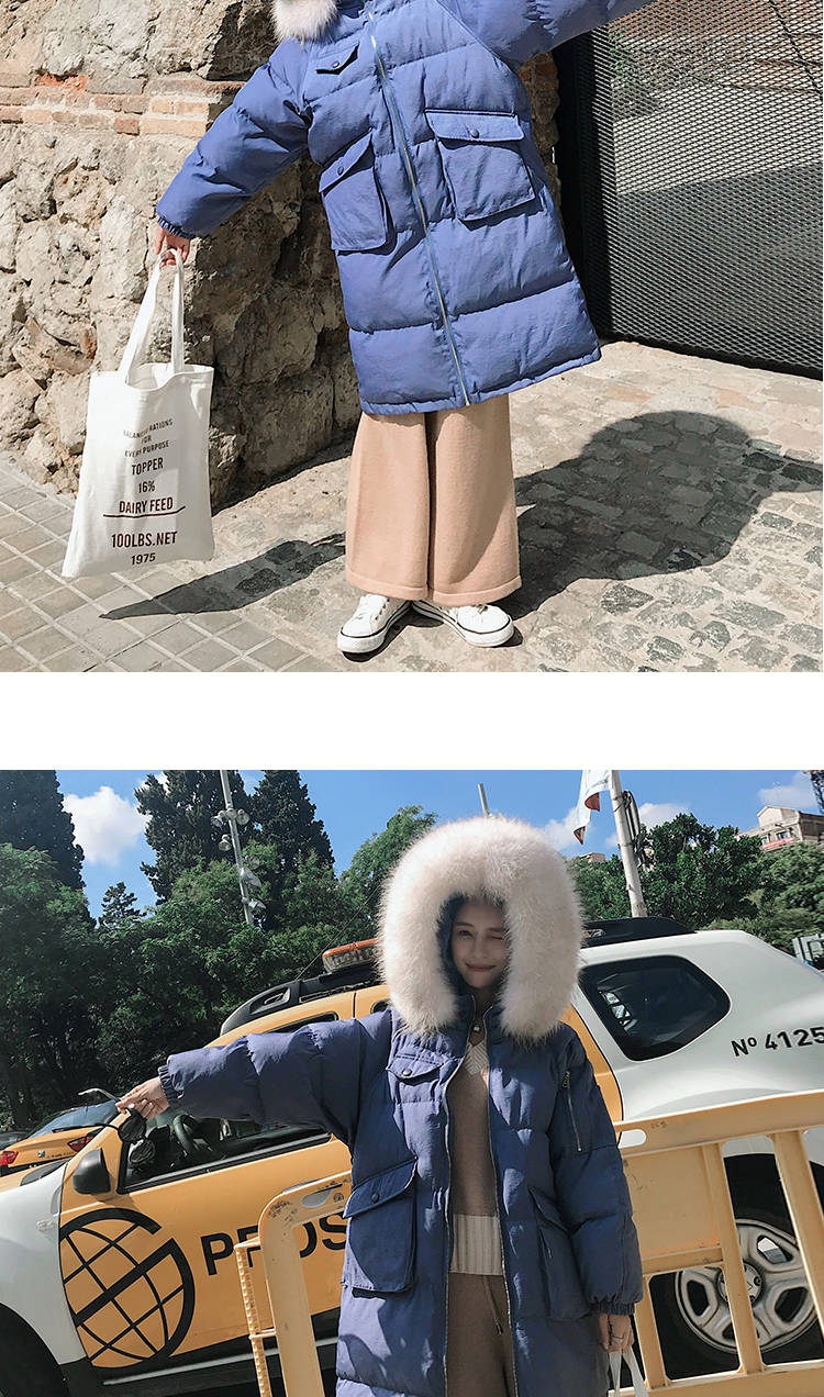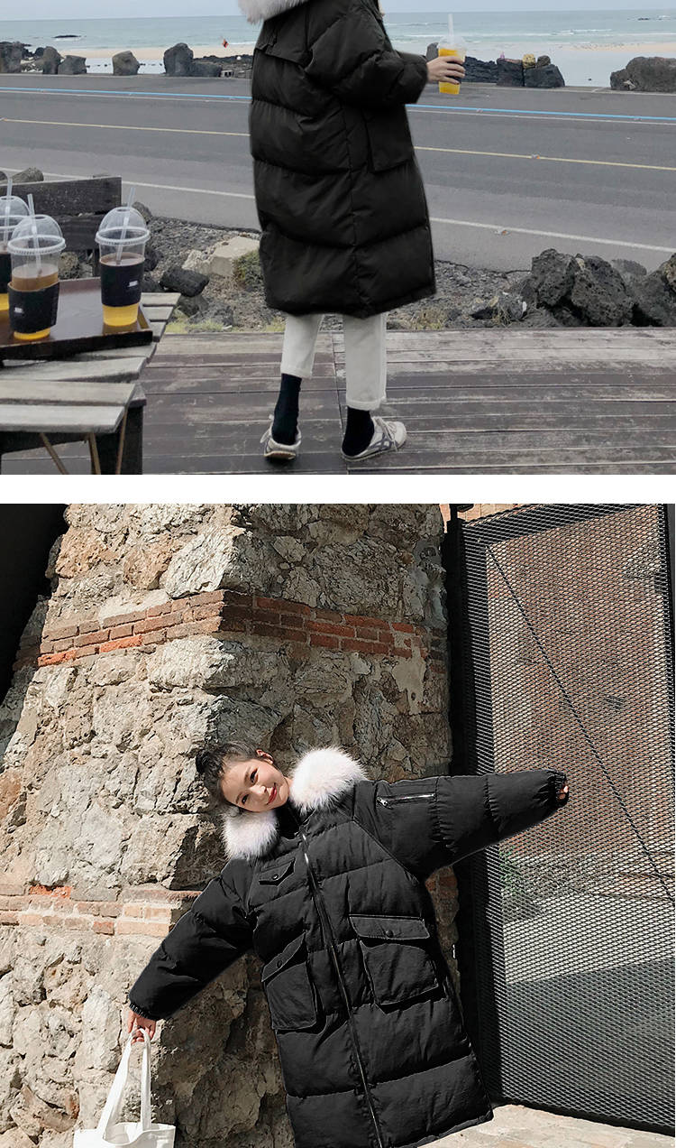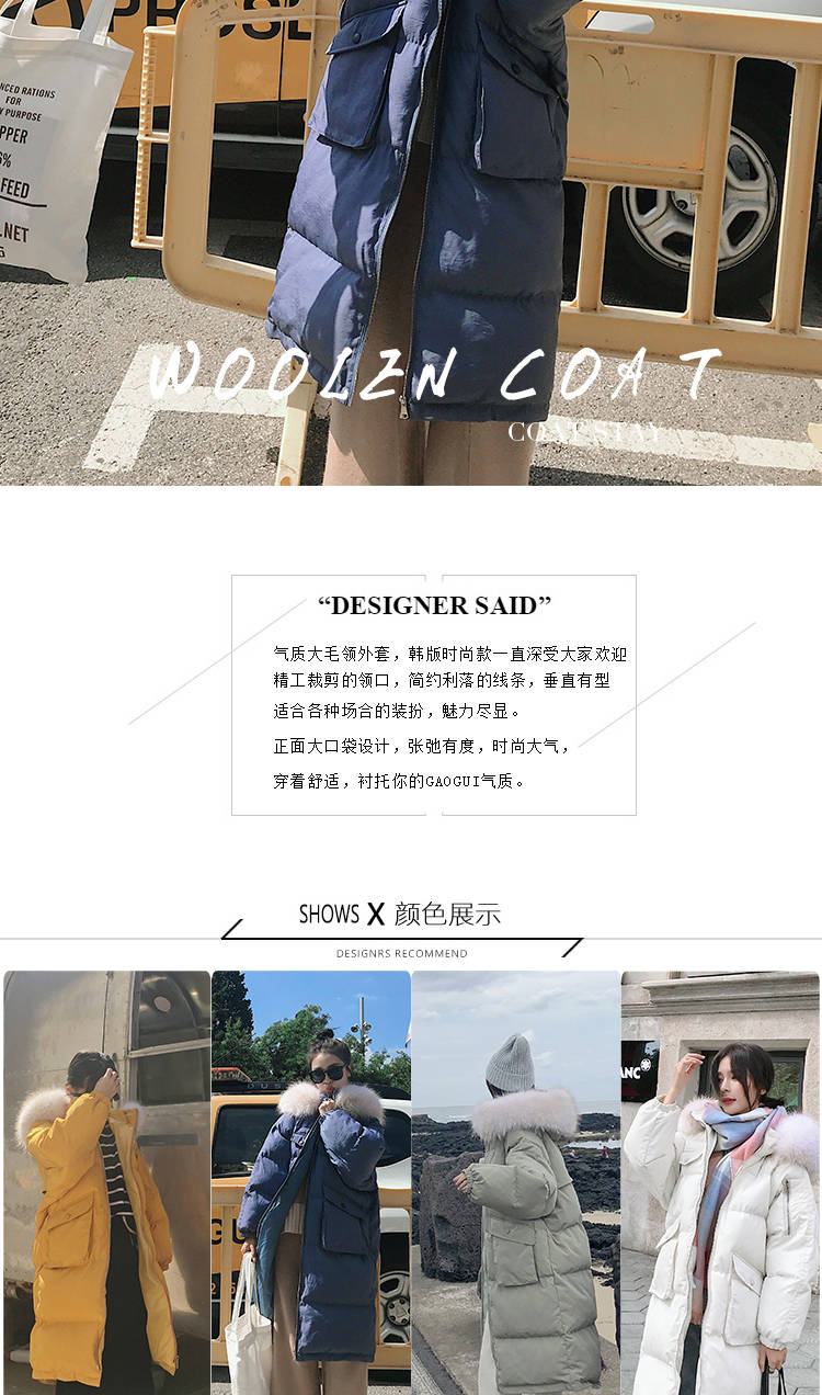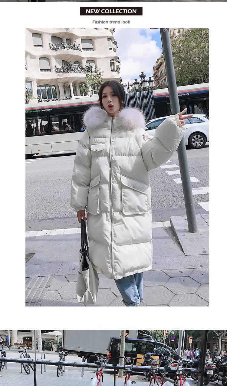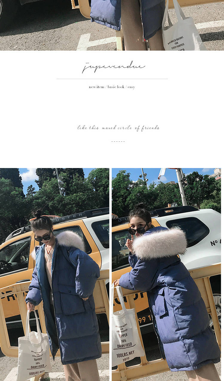 时尚连帽羽绒棉服女2019冬季新款宽松大毛领棉袄中长棉衣加厚外套