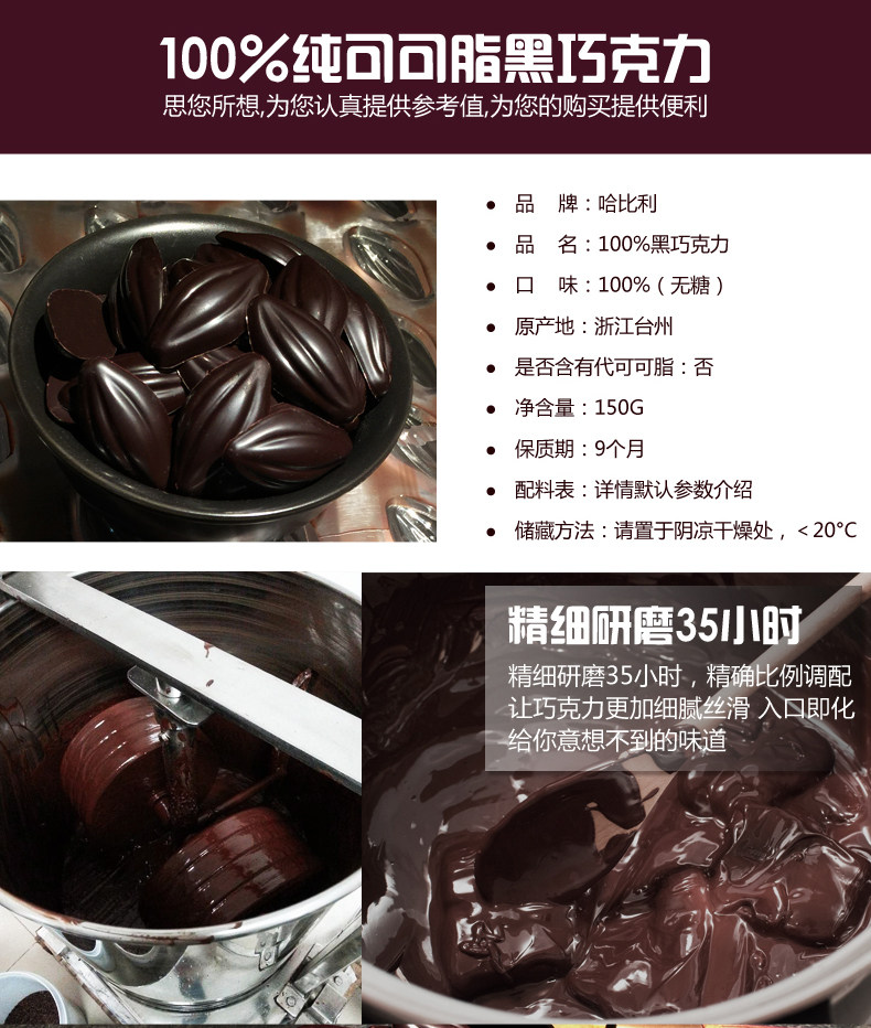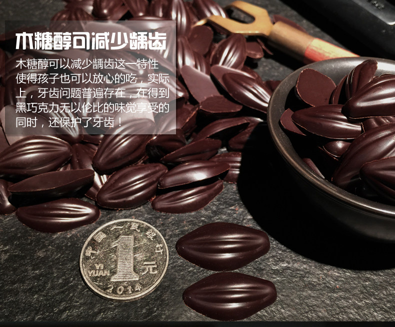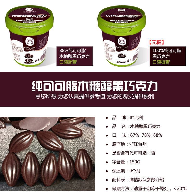哈比利纯可可脂木糖醇黑巧克力豆糖果低脂烘焙小零食无糖无奶不酸