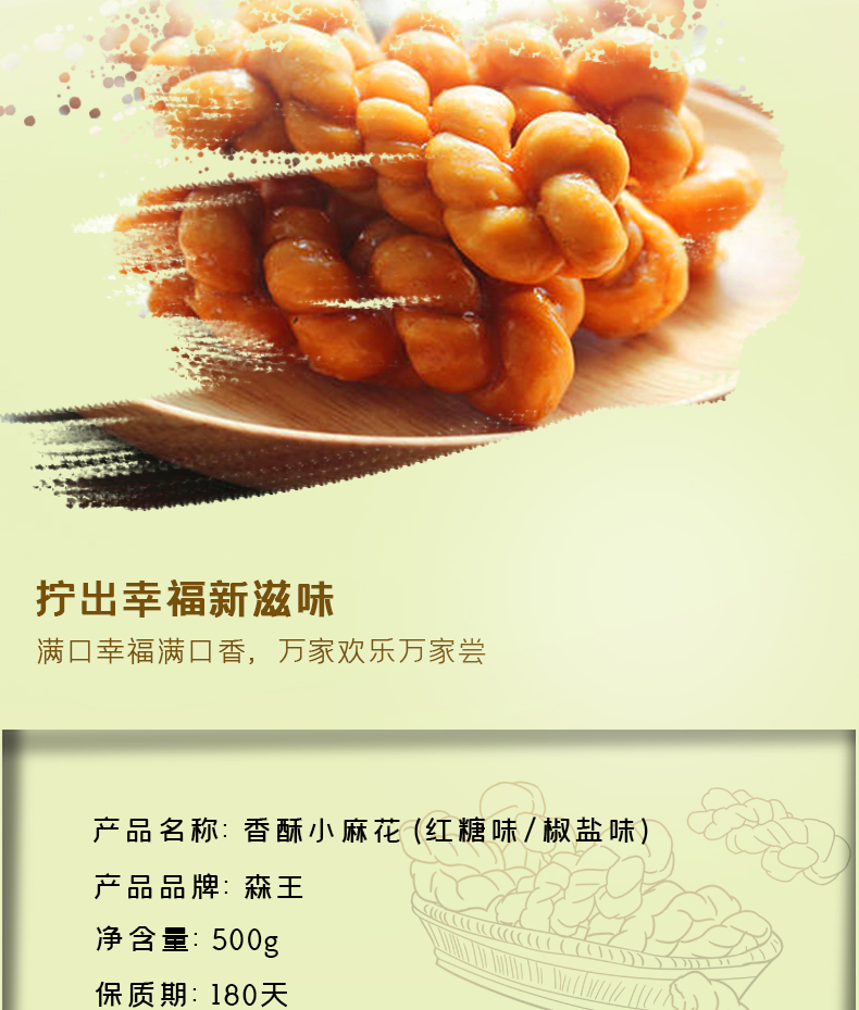 森王红糖小麻花单独包装袋装散装一箱好吃的网红休闲小吃零食品