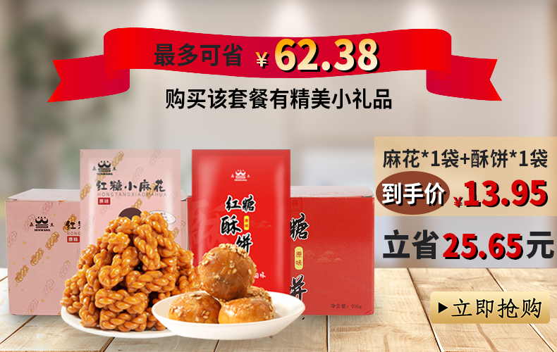 我的天,买1送1!挨打价!运营背着老板偷偷送福利了,5元一袋麻花还送价值29元的红糖姜茶一盒!每个还都是独立包装,亏本只为冲销量。