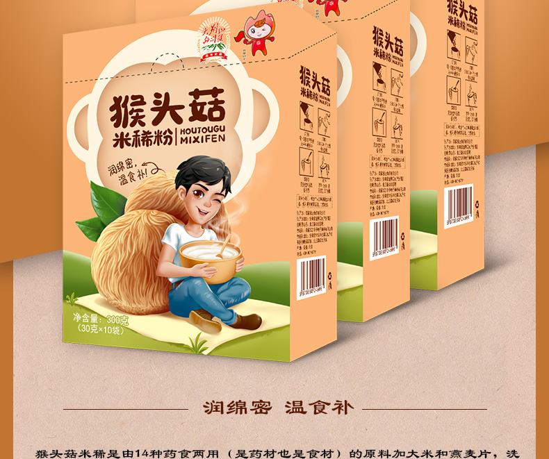 天猫正品保证,猴头菇早餐米稀30g*10袋,14种食材低温烘培无任何添加,天天猴头菇米稀,健康好胃来,自然五谷,老人小孩都能吃,长期食用更佳。