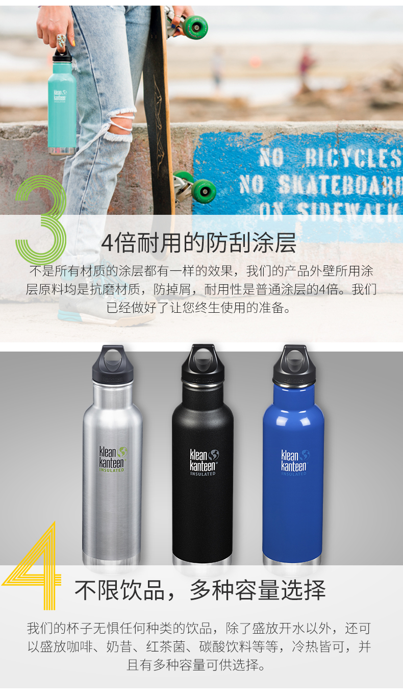 美国KleanKanteen经典保温杯,不锈钢大容量户外运动水杯子592ml,便携,可车载,经典直筒杯身便于携带