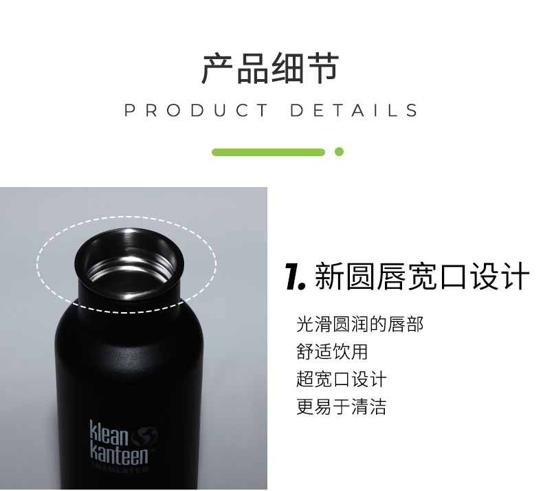 美国Klean Kanteen 经典保温杯不锈钢大容量户外运动水杯子 592ml