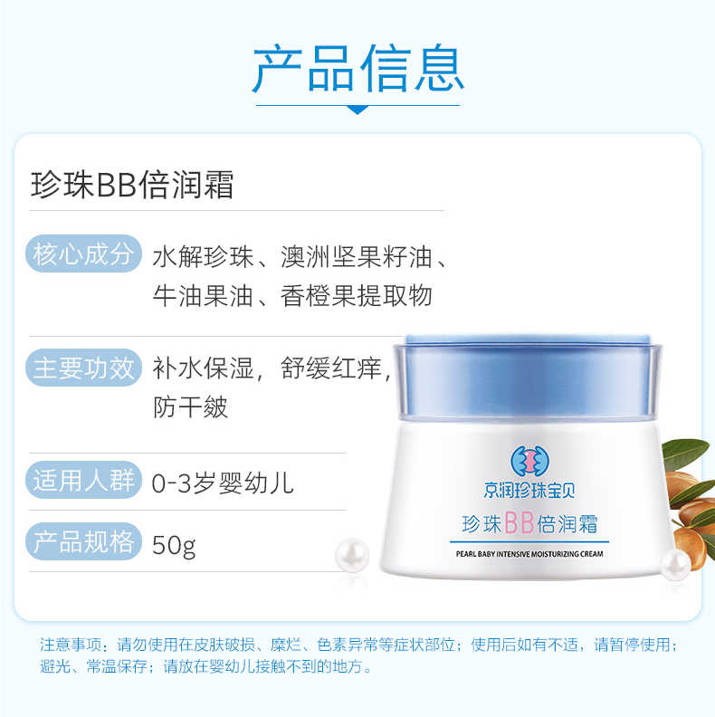 京润珍珠儿童面霜宝宝润肤霜滋润保湿脸霜婴幼儿秋冬季滋养护肤品