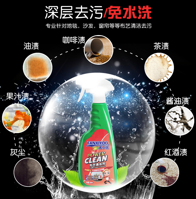 布艺沙发清洁剂地毯窗帘干洗剂免水洗去污渍神器沙发套喷雾清洗剂