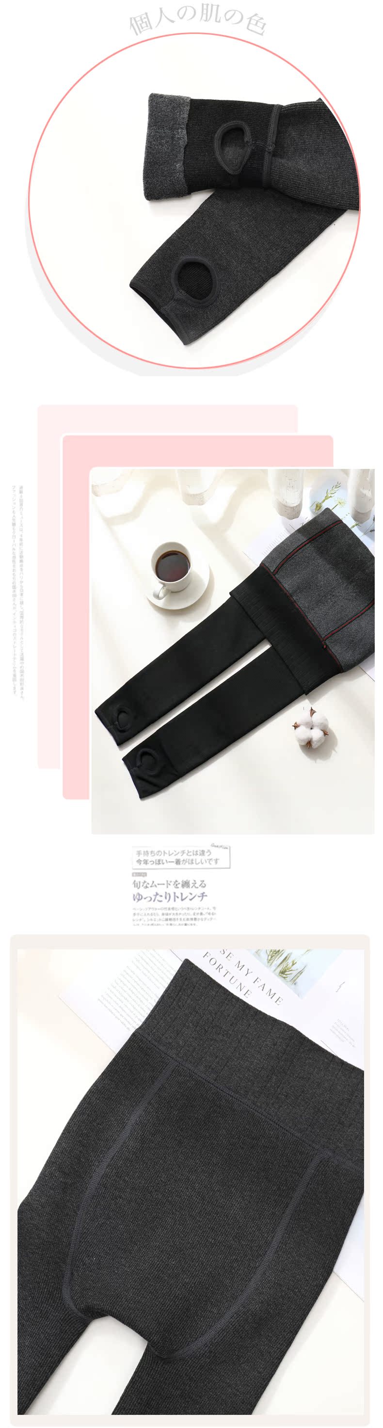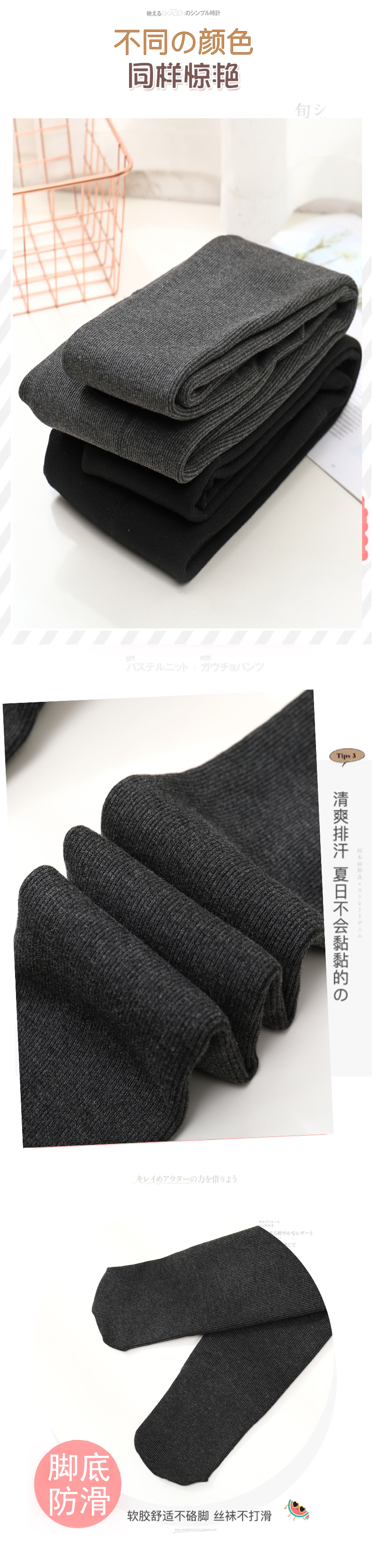 连裤袜女秋冬加绒加厚保暖高腰仿羊绒连袜裤棉螺纹竖条黑灰打底裤