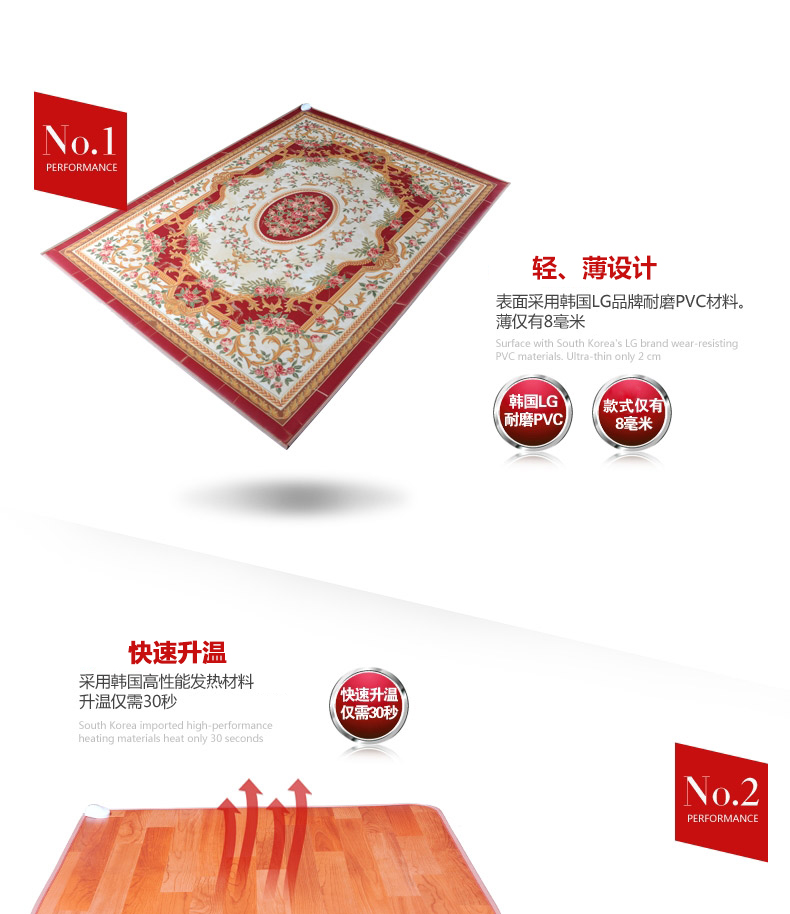 韩盛地垫,让你享受不一样的移动地暖,轻薄设计,采用韩国LG品牌pvc材料,高性能发热材料,仅需30s,微电脑恒温控制器,轻盈体质,防滑地步,让你和家人享受不在寒冷的冬天。
