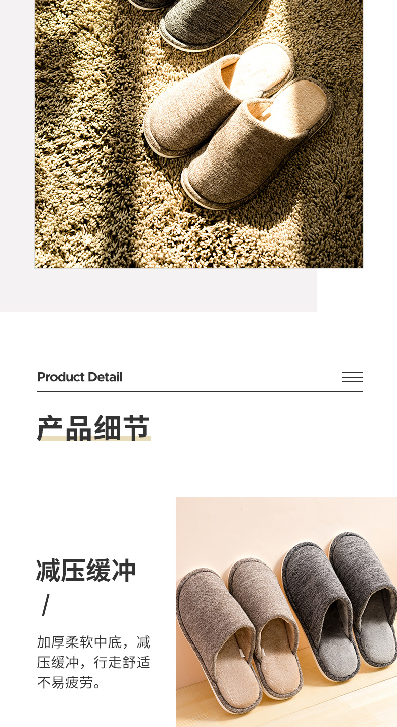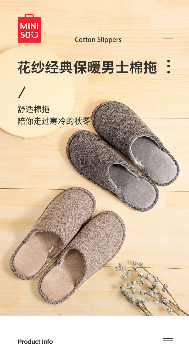 MINISO名创优品花纱经典保暖男士棉拖冬季家居室内毛拖鞋家用保暖