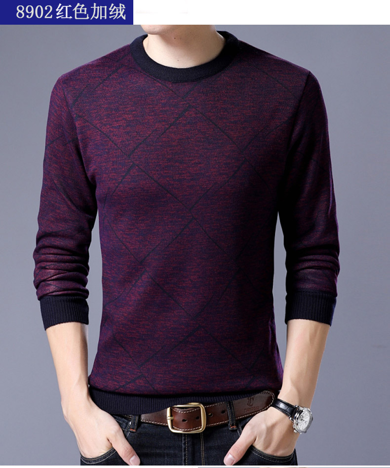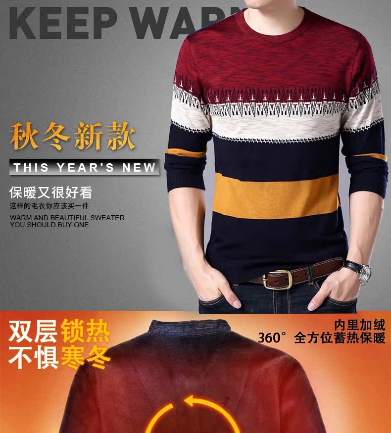 北极绒冬季新款圆领保暖毛衣青年男士加绒加厚针织打底衫韩版上衣