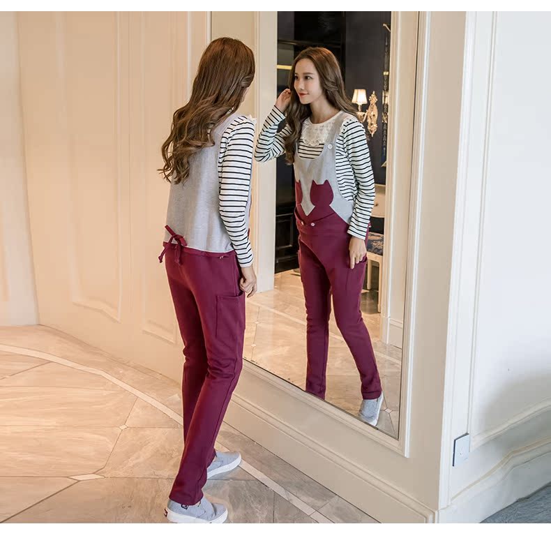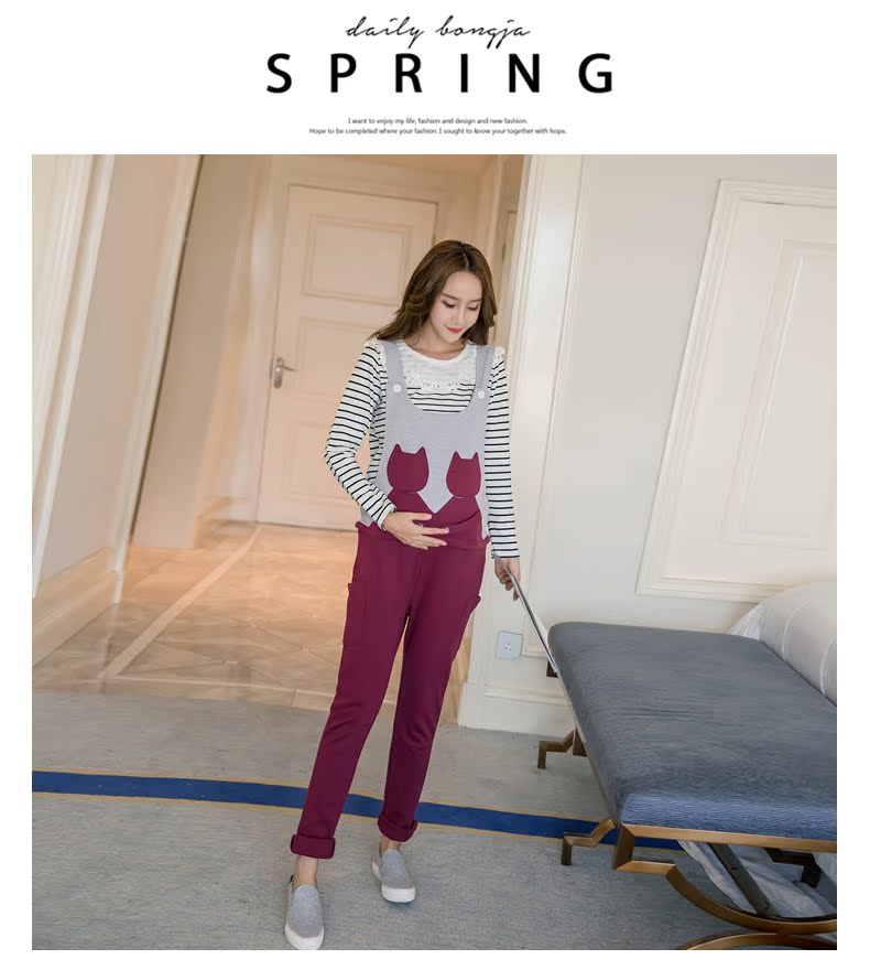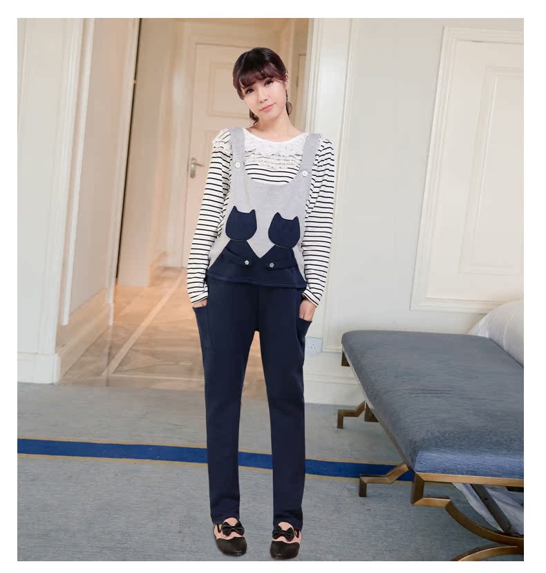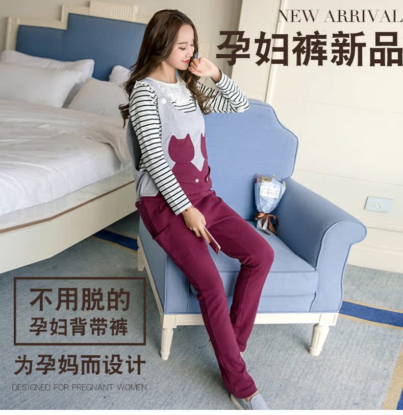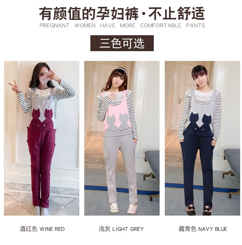 孕妇春款秋装孕妇背带裤长裤韩版修身春秋款孕妇装托腹运动休闲裤