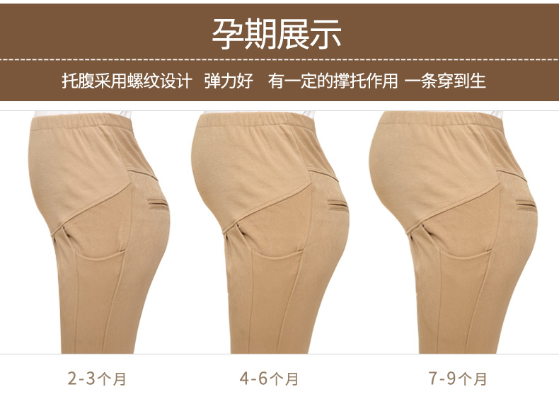 高腰托腹,不抽丝不掉色,亲肤面料,舒适透气,内设调节带,松紧自如,高腰托腹,修身版型,时尚显瘦,孕在秋冬,时尚与你!