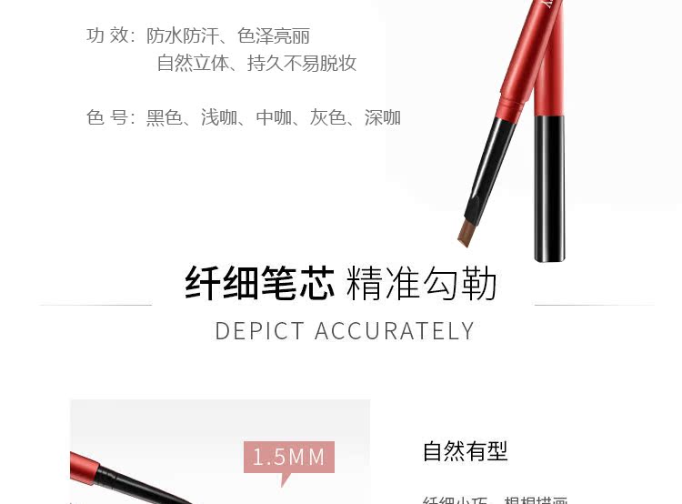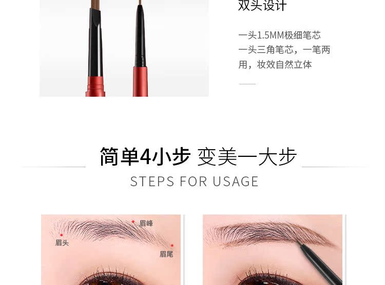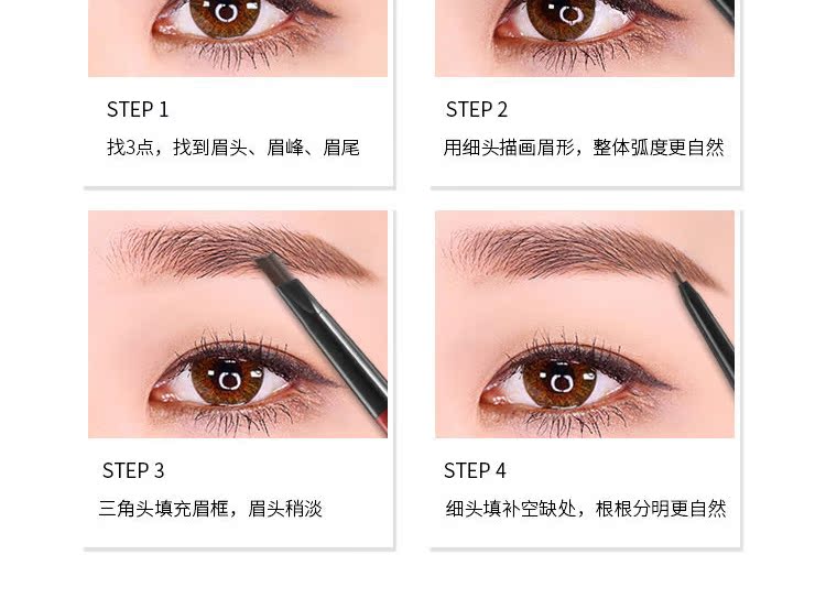 【不化妆也要化眉毛】双头设计,一支顶两支!多色可选,自动笔芯,色泽亮丽,色调自然丰盈,塑形双头眉笔,一笔勾勒立体眉形!