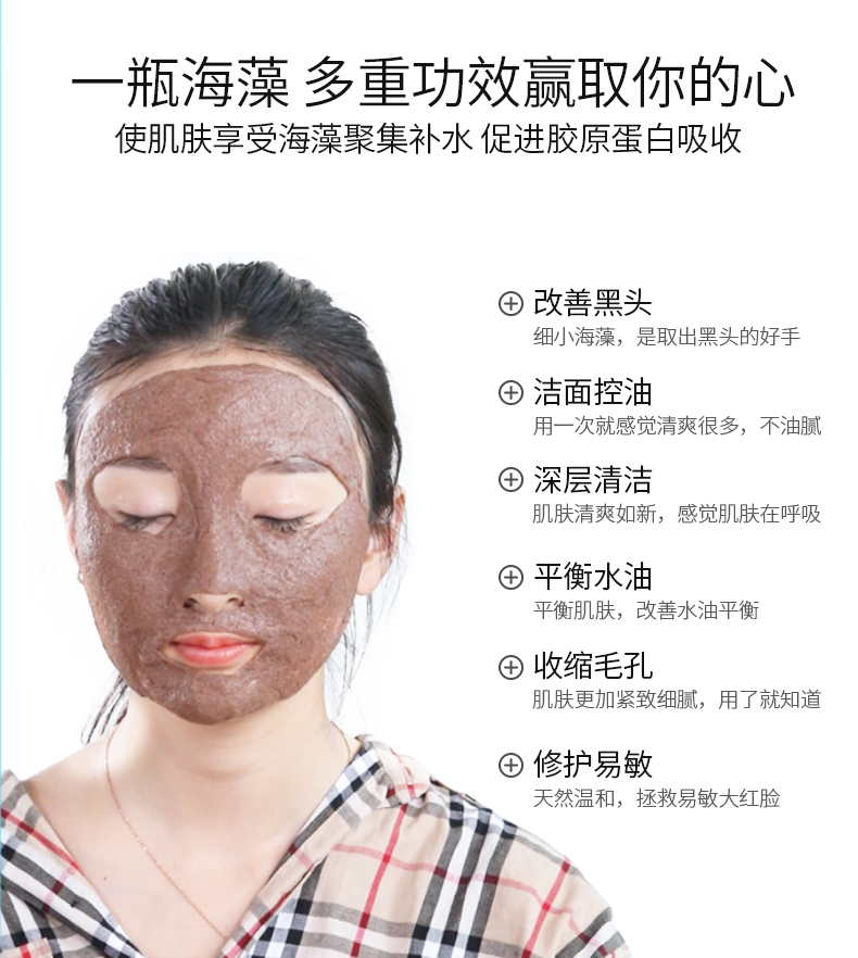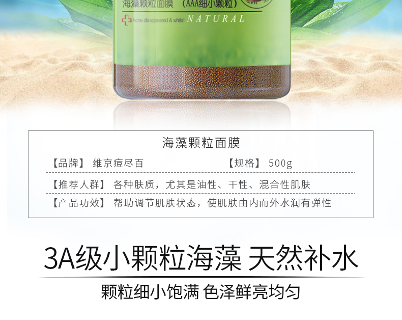 痘尽百海藻面膜颗粒天然补水保湿清洁女洗睡眠纯细小海澡籽泥500g