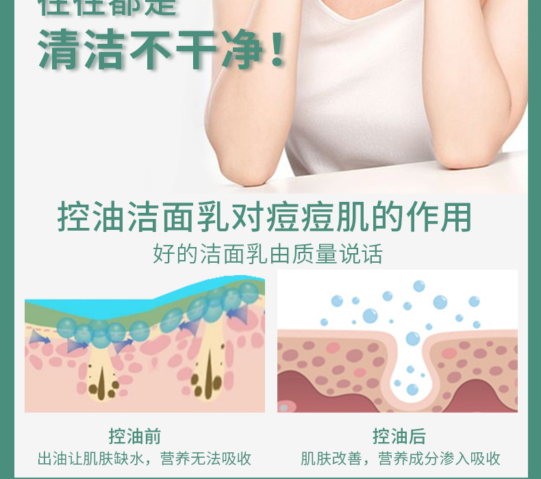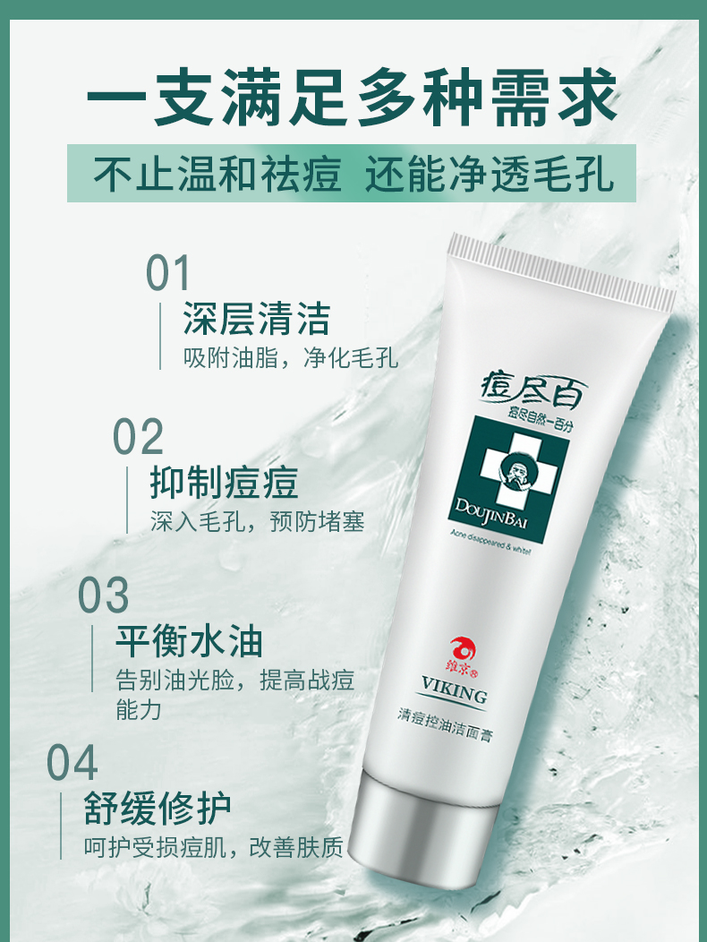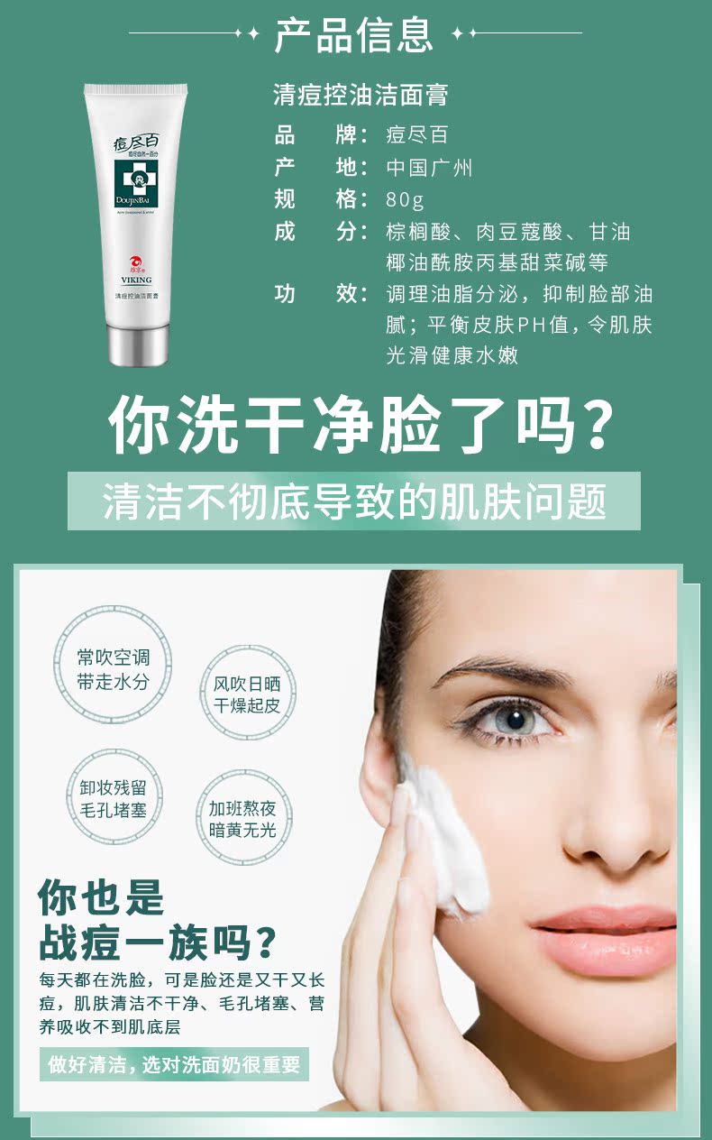 痘尽百祛痘洗面奶女男士深层清洁毛孔学生控油去痘去油洁面乳膏