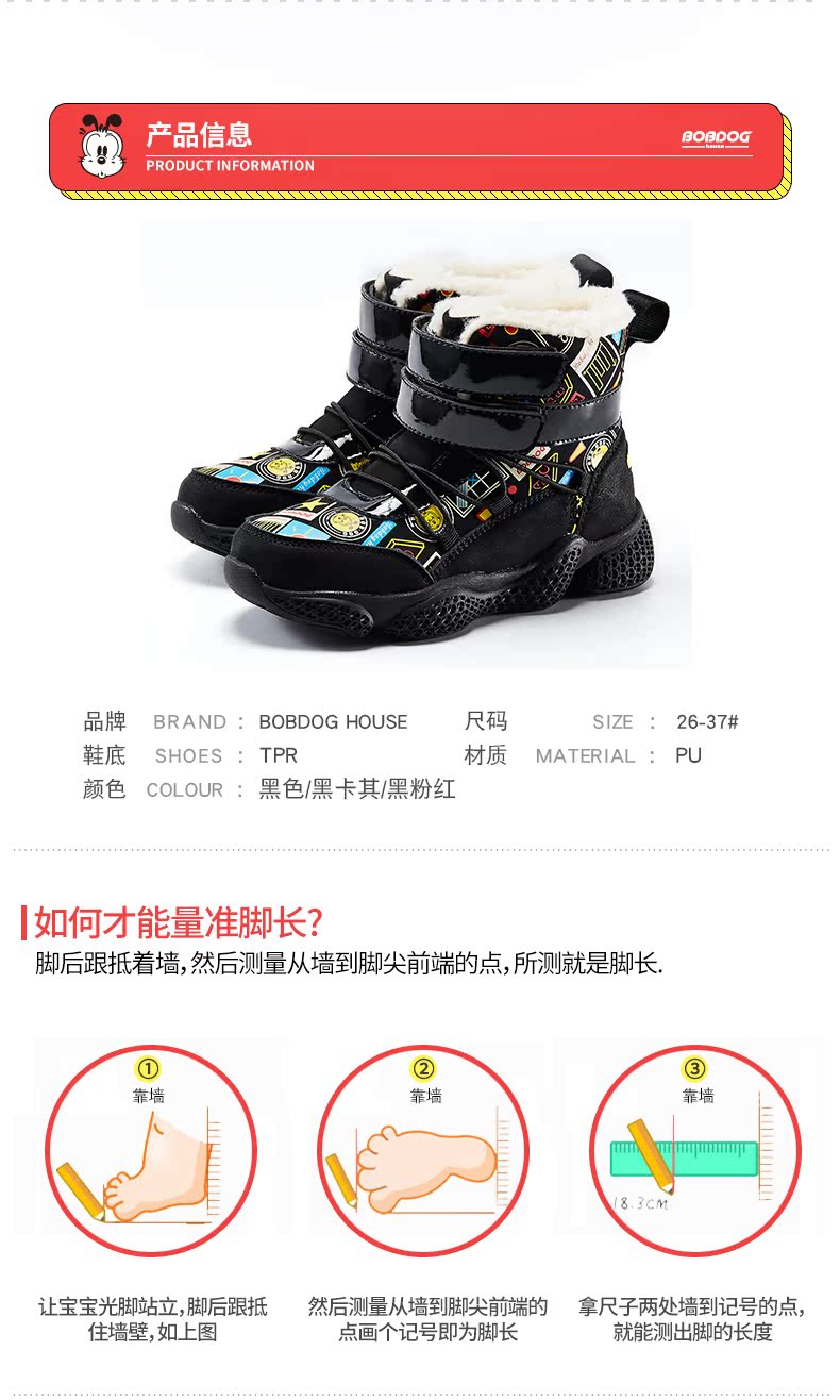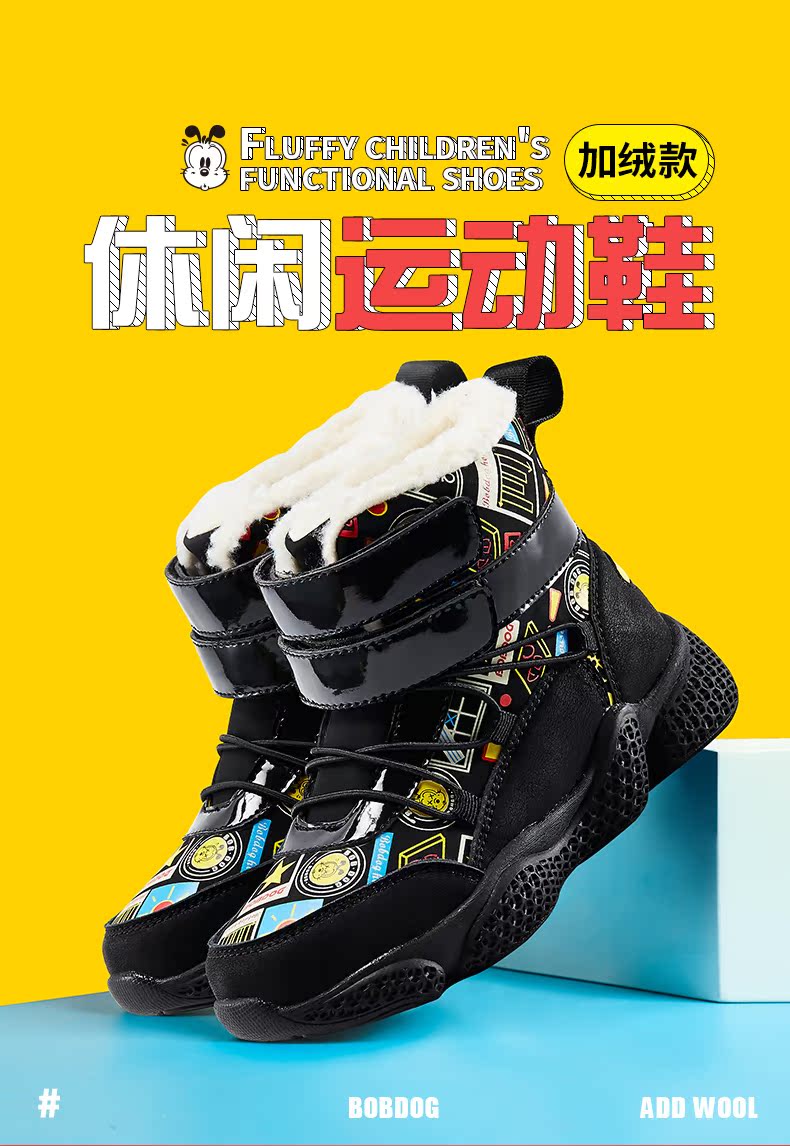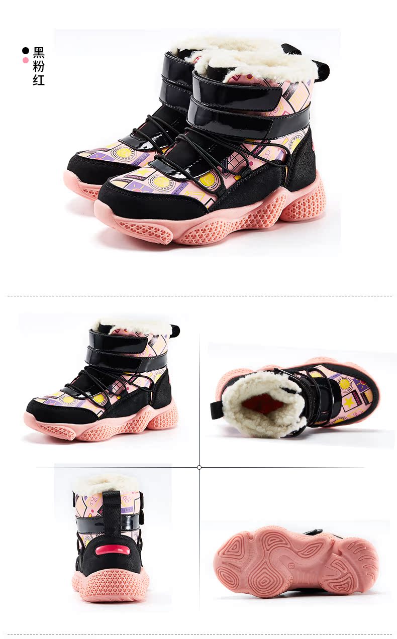巴布豆童鞋旗舰儿童雪地靴冬季新款女童棉鞋加绒男童鞋保暖短靴