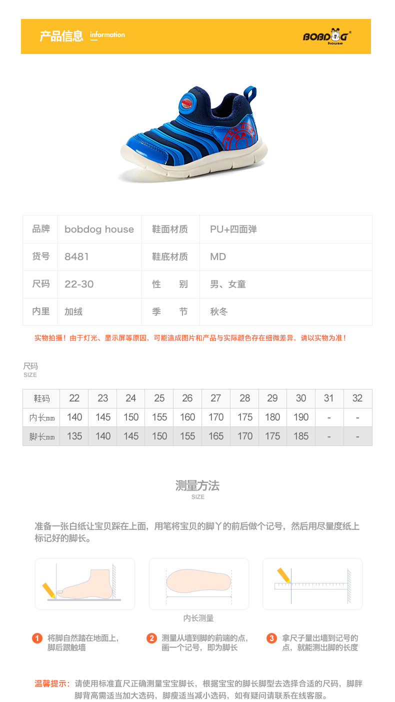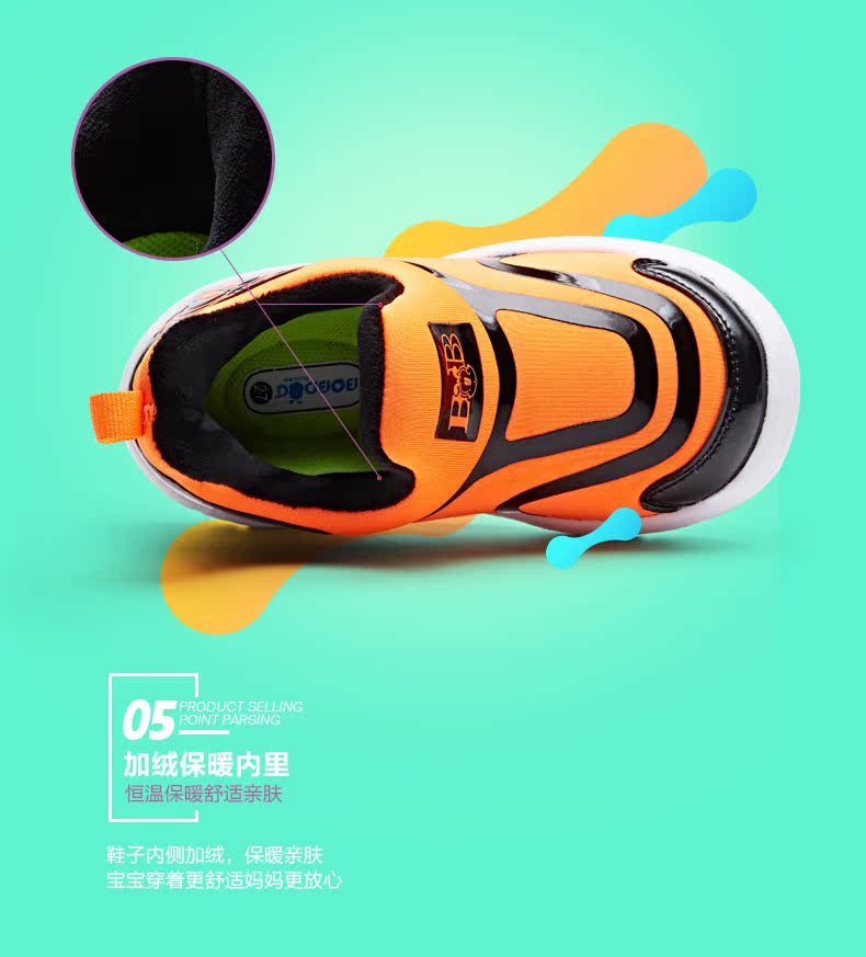 巴布豆毛毛虫童鞋旗舰海马鞋儿童运动鞋女童宝宝休闲鞋加绒二棉鞋