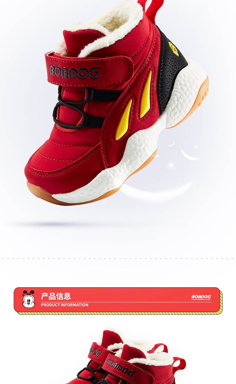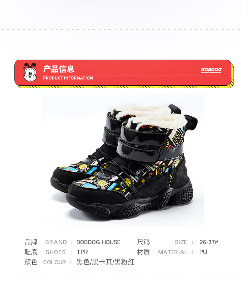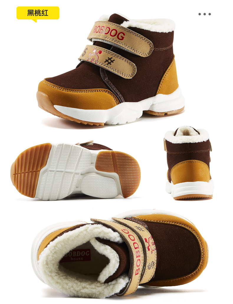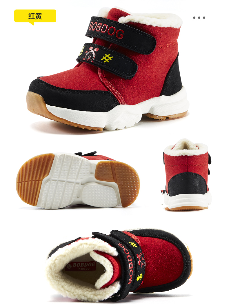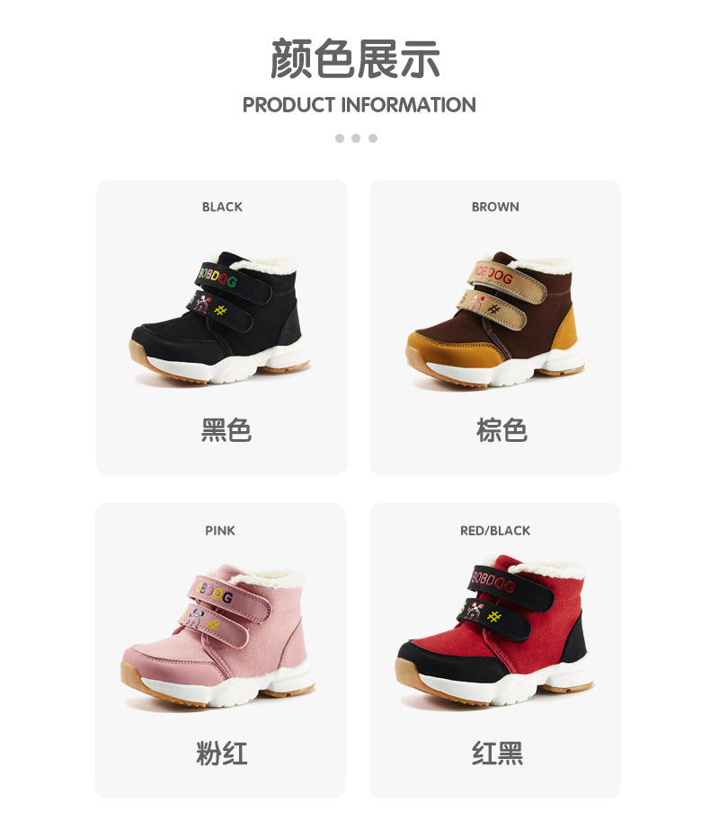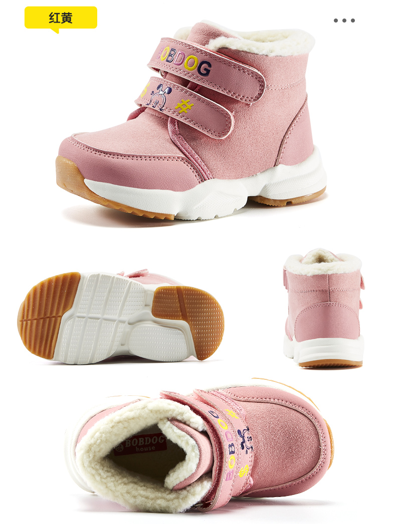 巴布豆童鞋旗舰冬季棉鞋女童儿童机能鞋男童运动鞋加绒保暖二棉