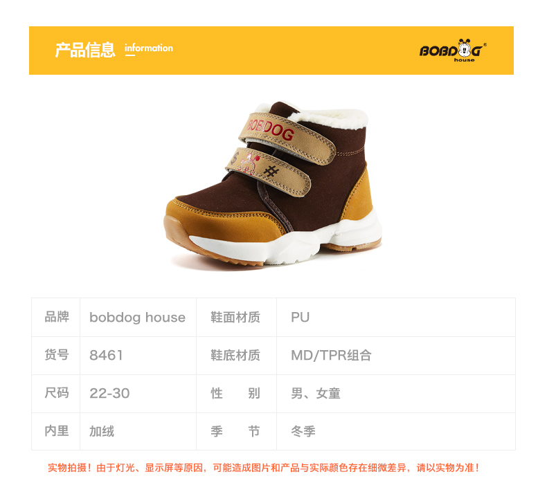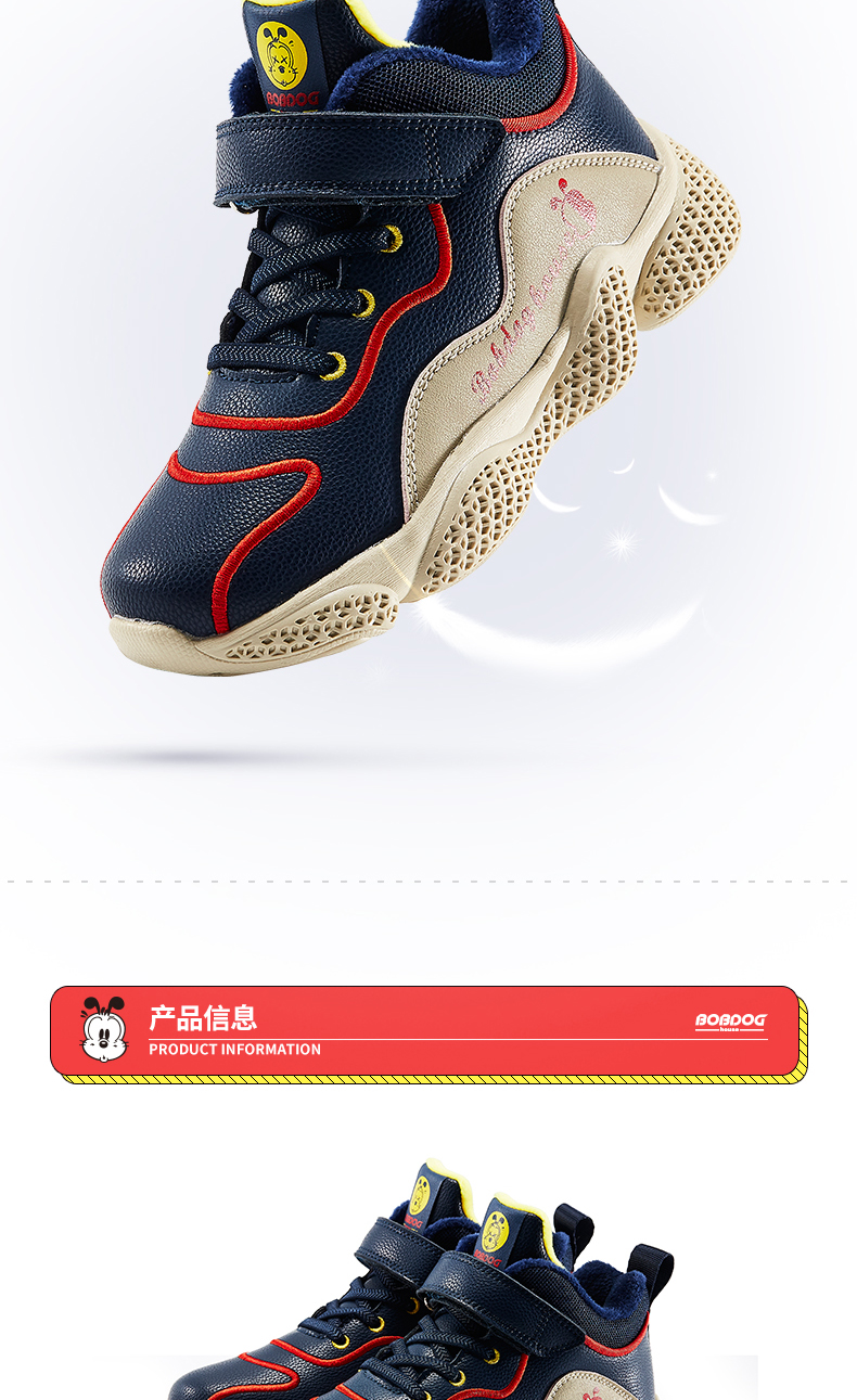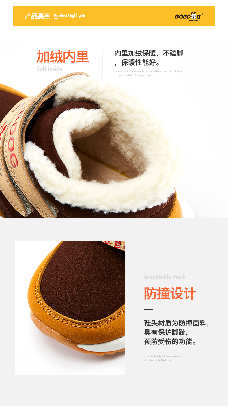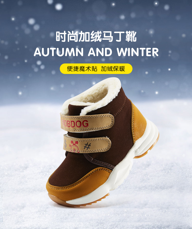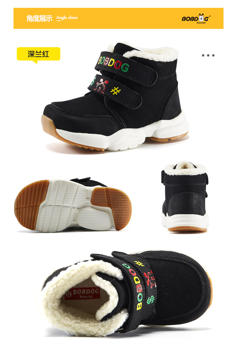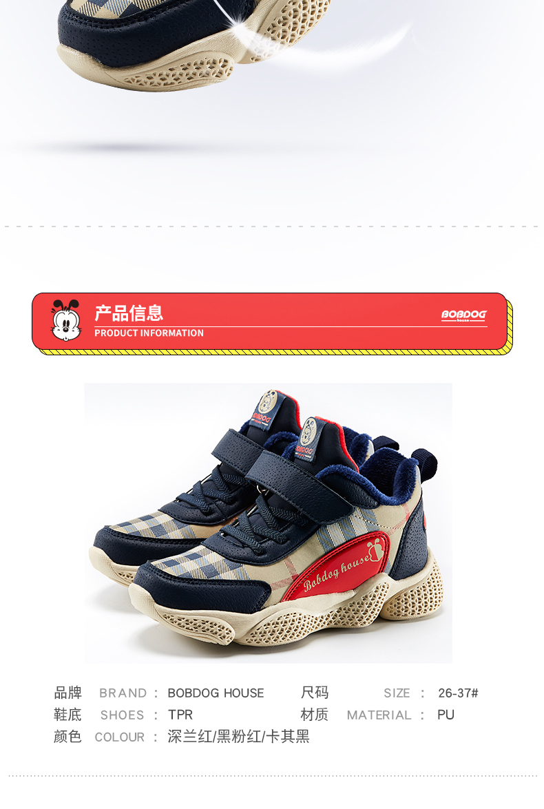 巴布豆童鞋旗舰冬季棉鞋女童儿童机能鞋男童运动鞋加绒保暖二棉