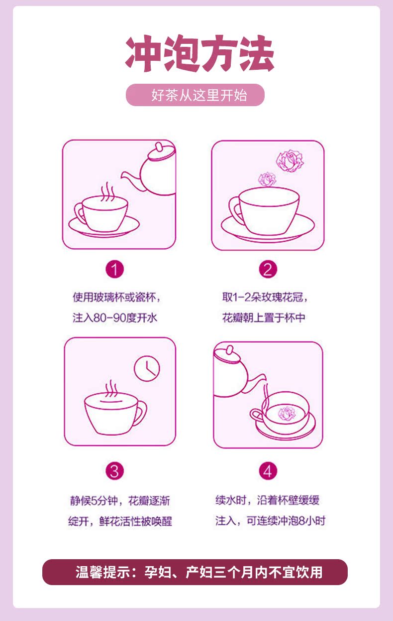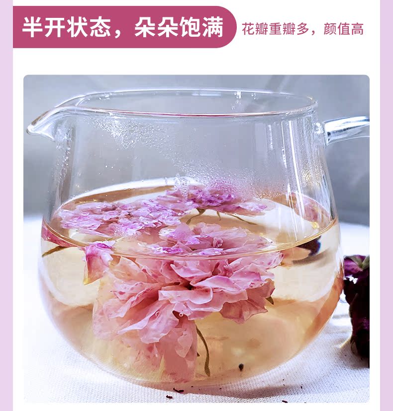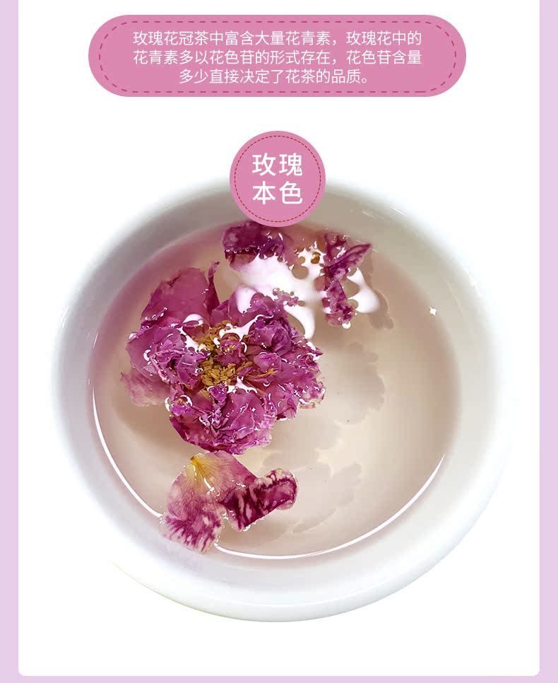玫瑰花的花青素含量高,抗氧化能力强,上浮下沉,入口顺滑清新,还能养颜排毒,延缓衰老,是美容养颜的理想选择!女孩子要常喝哦