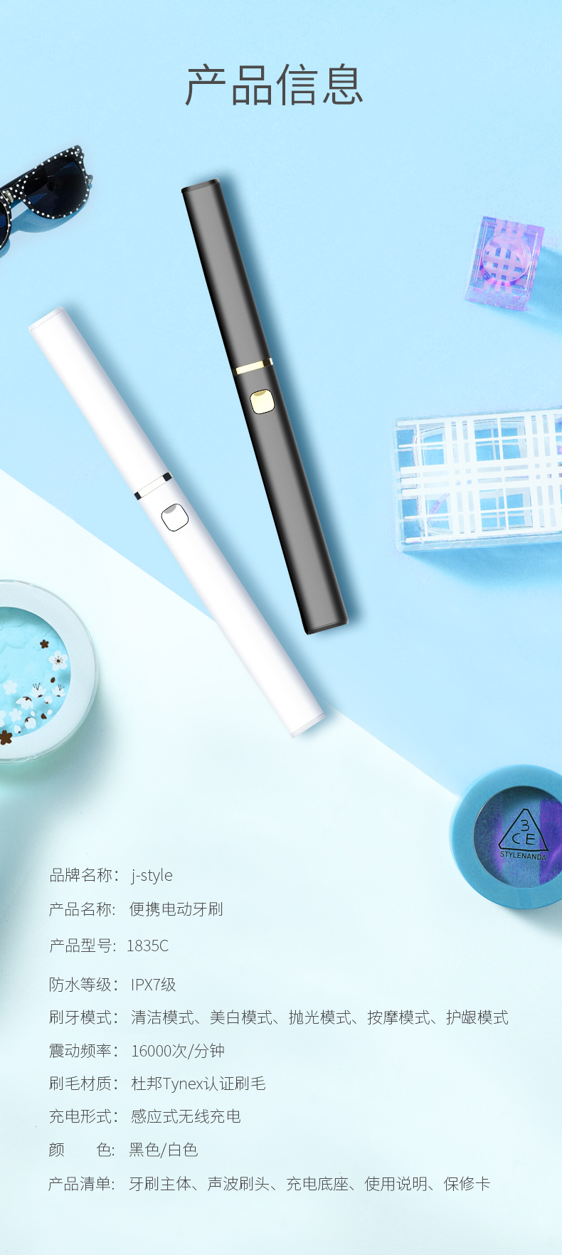 【J-style个人护理旗舰店】李嘉琪推荐的jstyle网红电动牙刷。独创收纳一体化设计,自带防尘盖,小巧便携卫生防尘,家用出差旅行全部搞定。保证清洁效果又不刺激牙齿。【赠运费险】