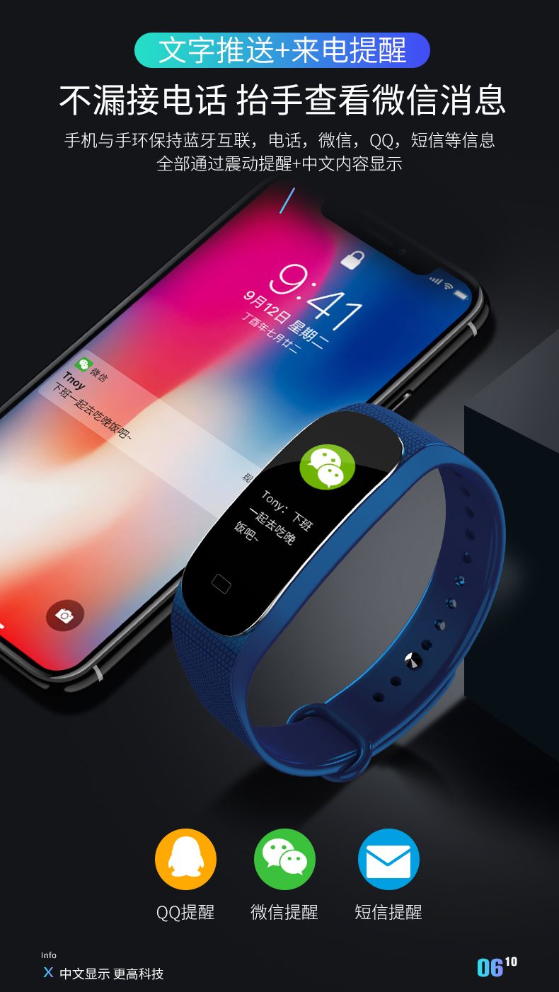天猫正品,智能计步,运动手环,苹果华为小米通用,血压血氧,心率检测,防水,男女通用,多功能健康彩屏手表,来电微信QQ通知,信息同步【赠运费险】