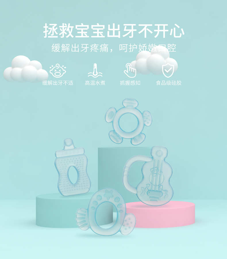 婴儿咬牙胶宝宝硅胶磨牙棒口咬胶手抓玩具软无毒可水煮防吃手神器