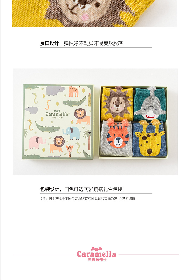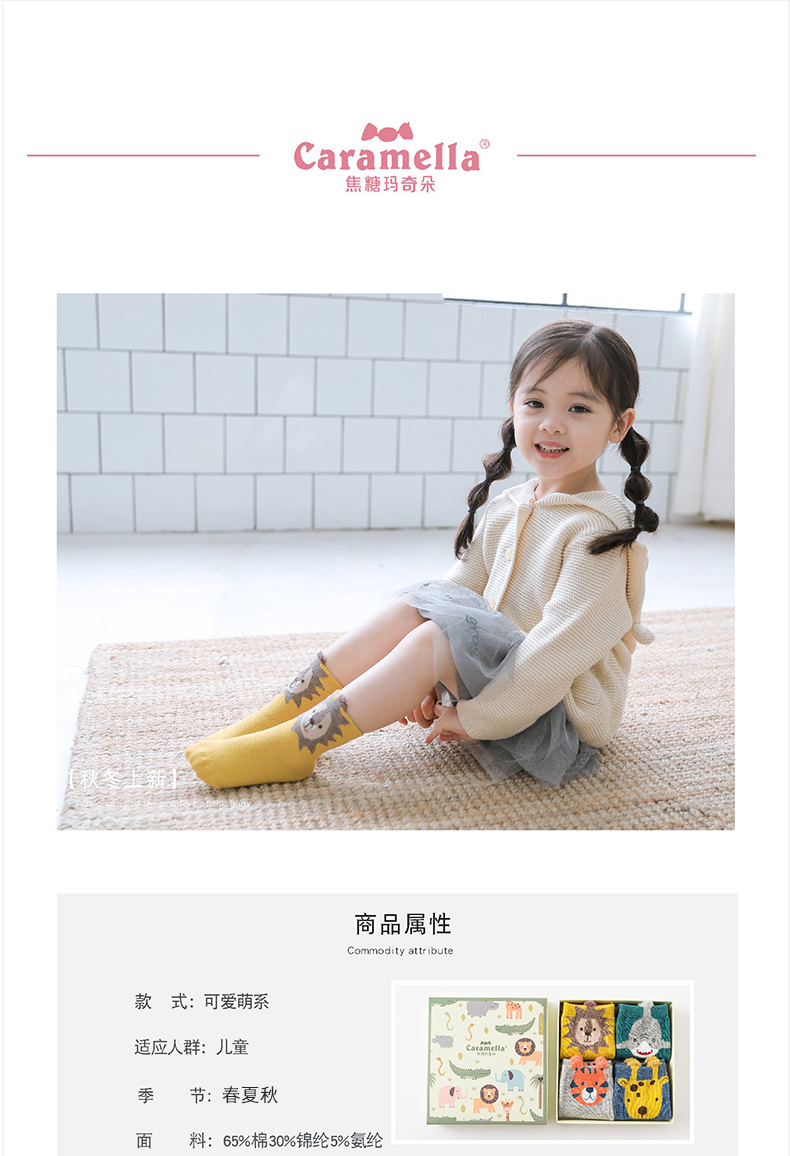 caramella儿童袜子纯棉宝宝袜秋冬加厚全棉袜男女童袜中筒婴儿袜