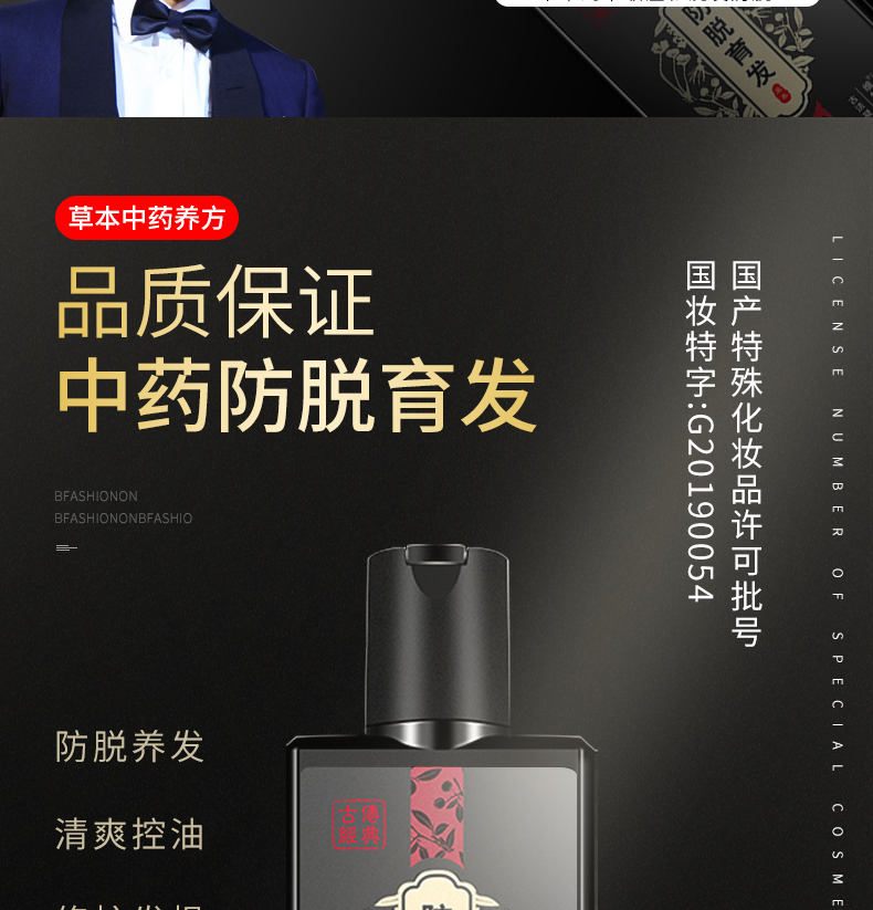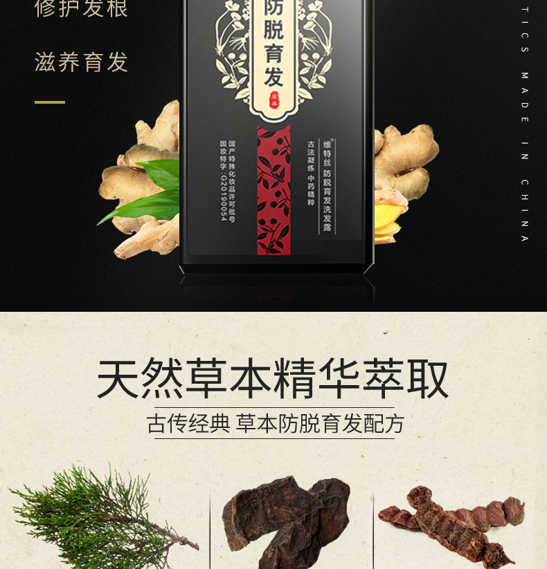 洗发水生姜防脱生发女中药防掉增发密发育发液男何首乌控油洗头膏