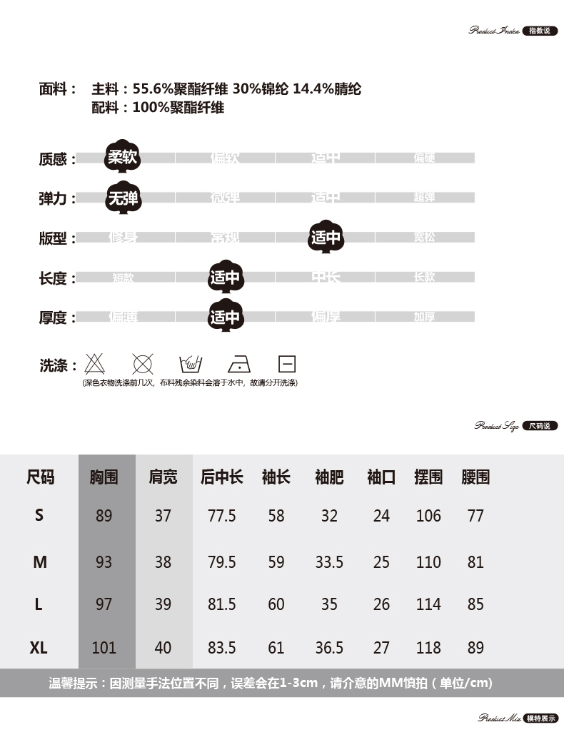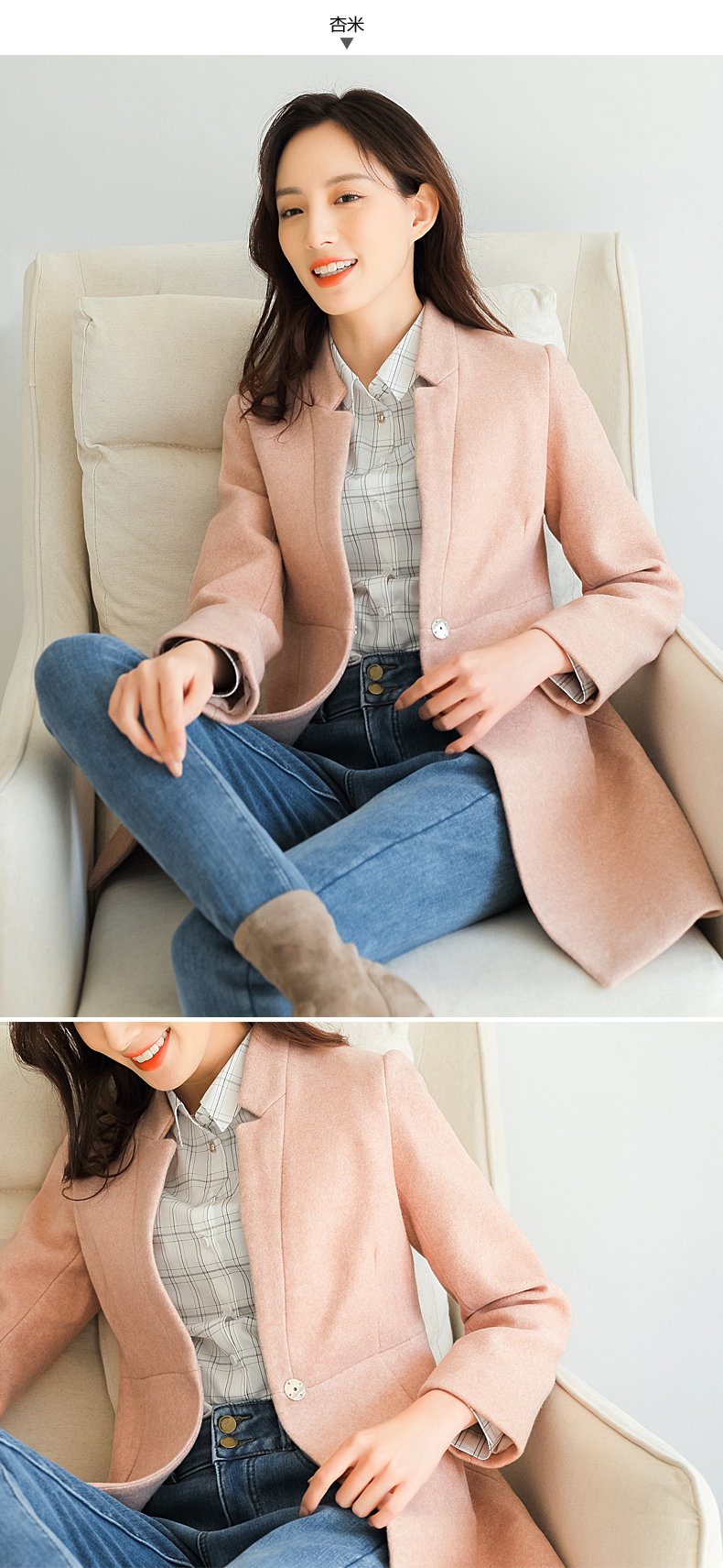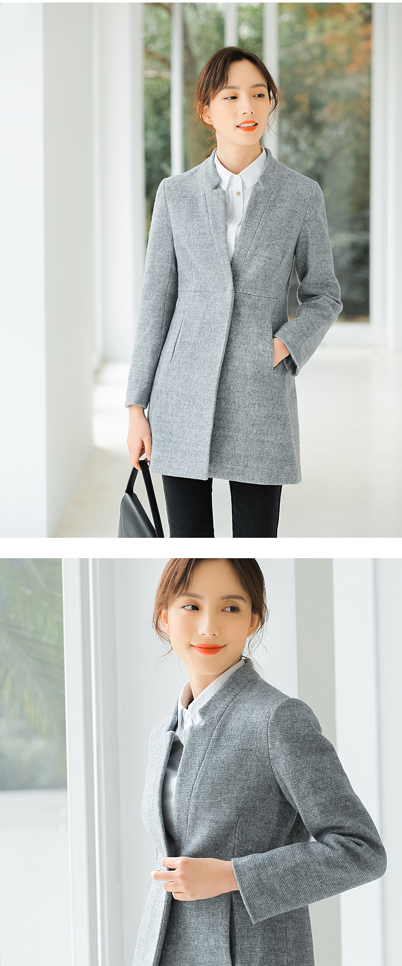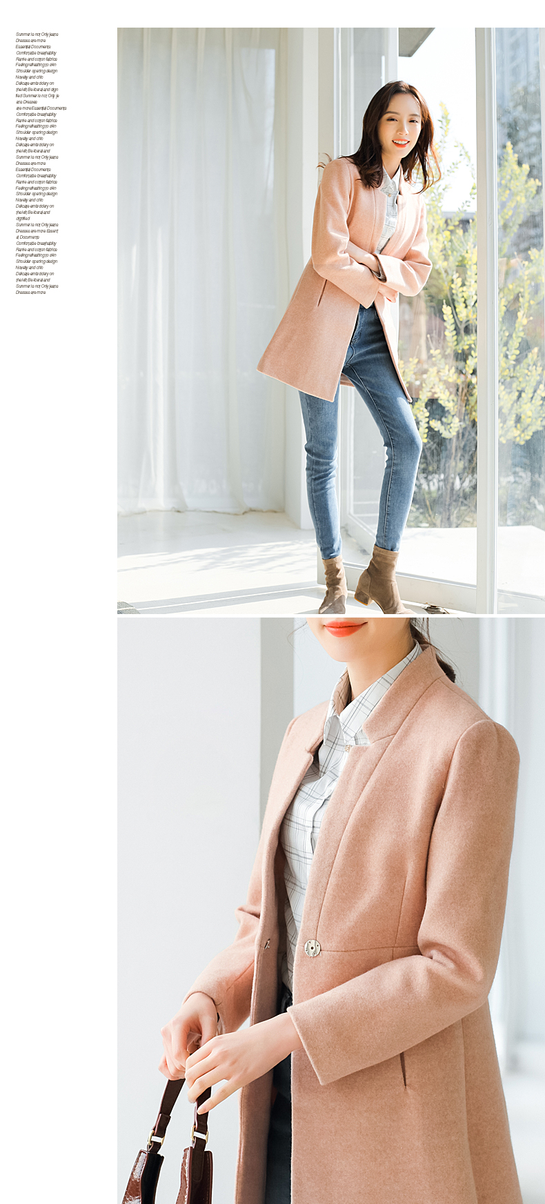 柔美洒脱呢大衣,溢满着都市女神的高雅魅力;利落平驳领,线条棱角分明,修饰脸型,简约干练;腰间金属钦扣,简约一粒设计;质感呢料,触感柔软,版型挺括,不易变形;快快抢购哦~