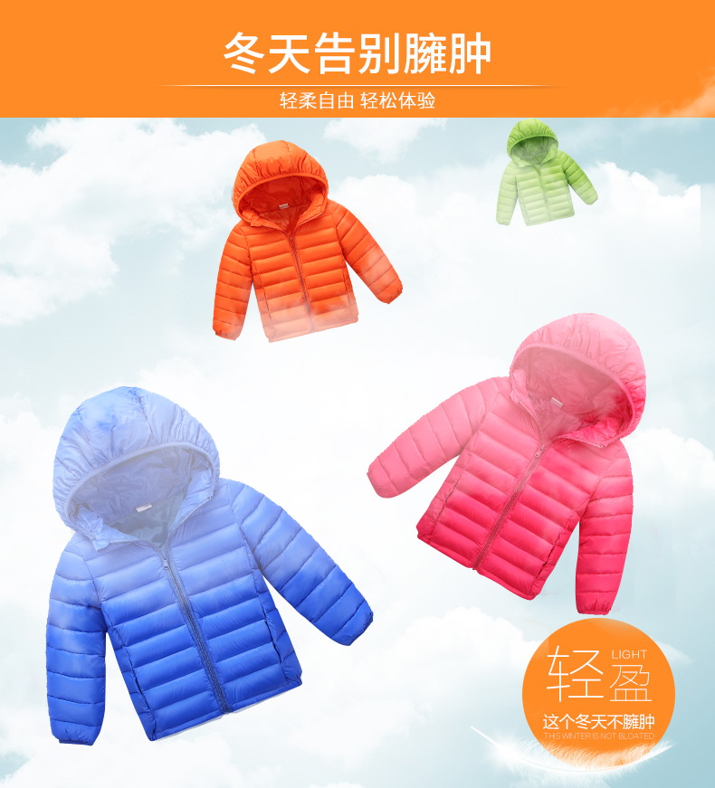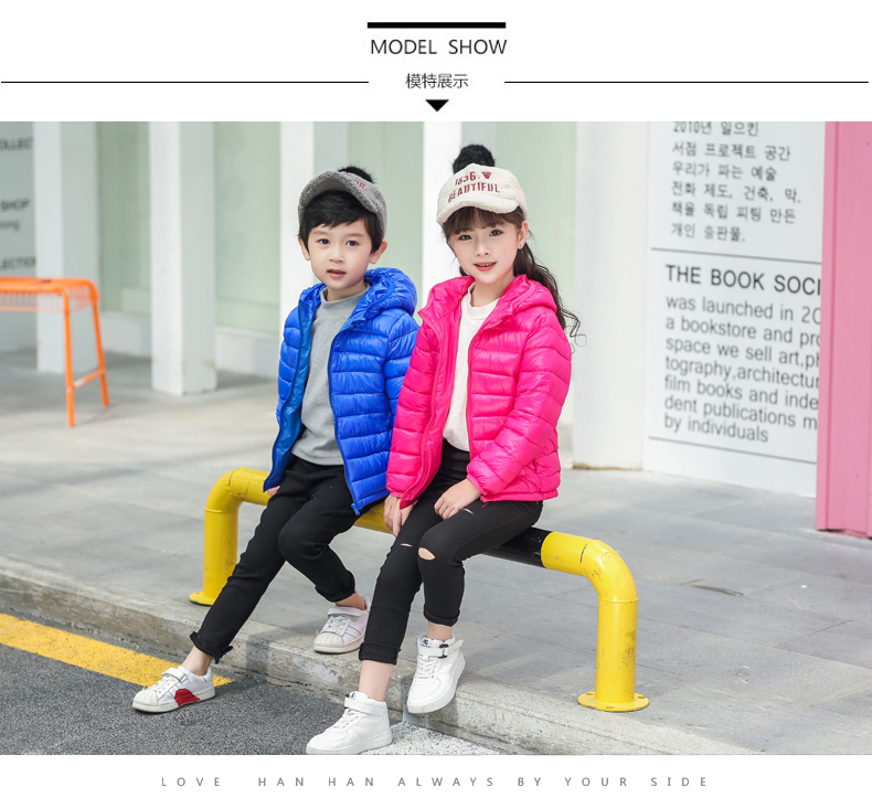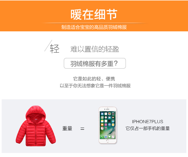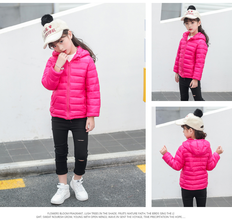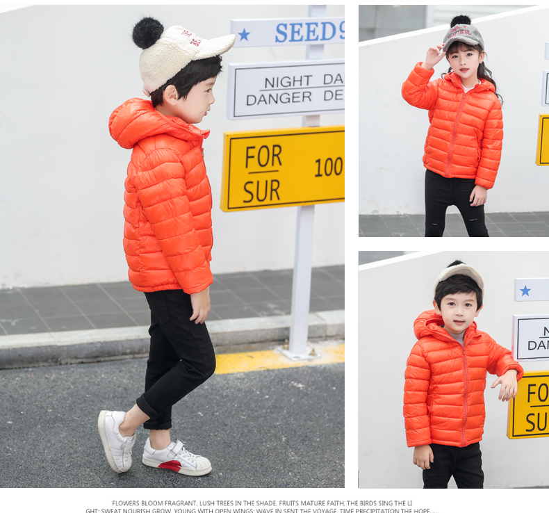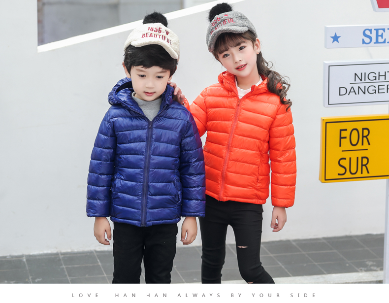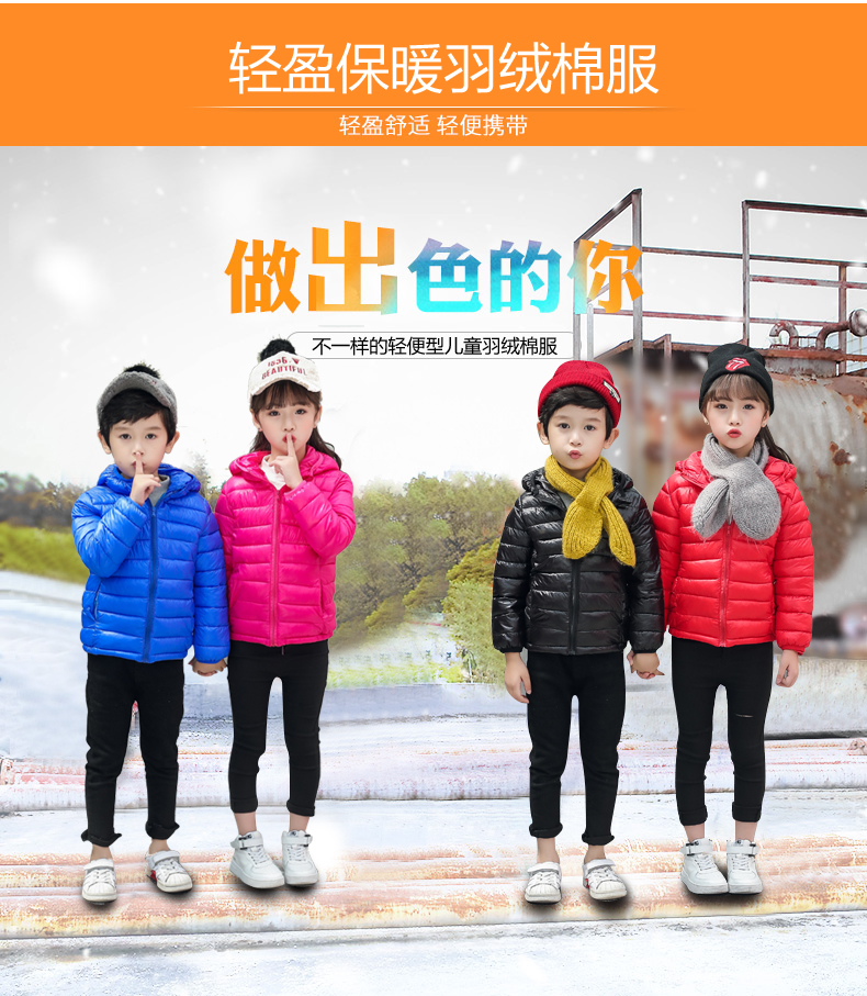 儿童轻薄款羽绒棉服,100~150CM,男女宝同款!轻薄保暖,透气性好,精工细作,韩版时尚,亮丽多色,纯色连帽设计