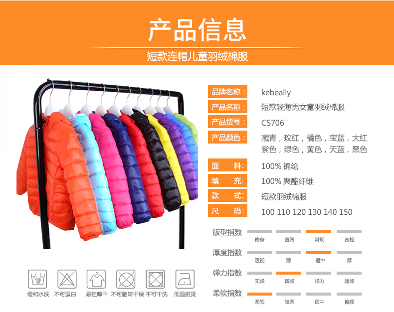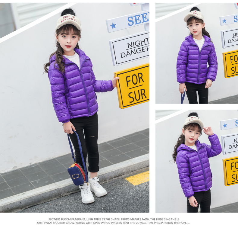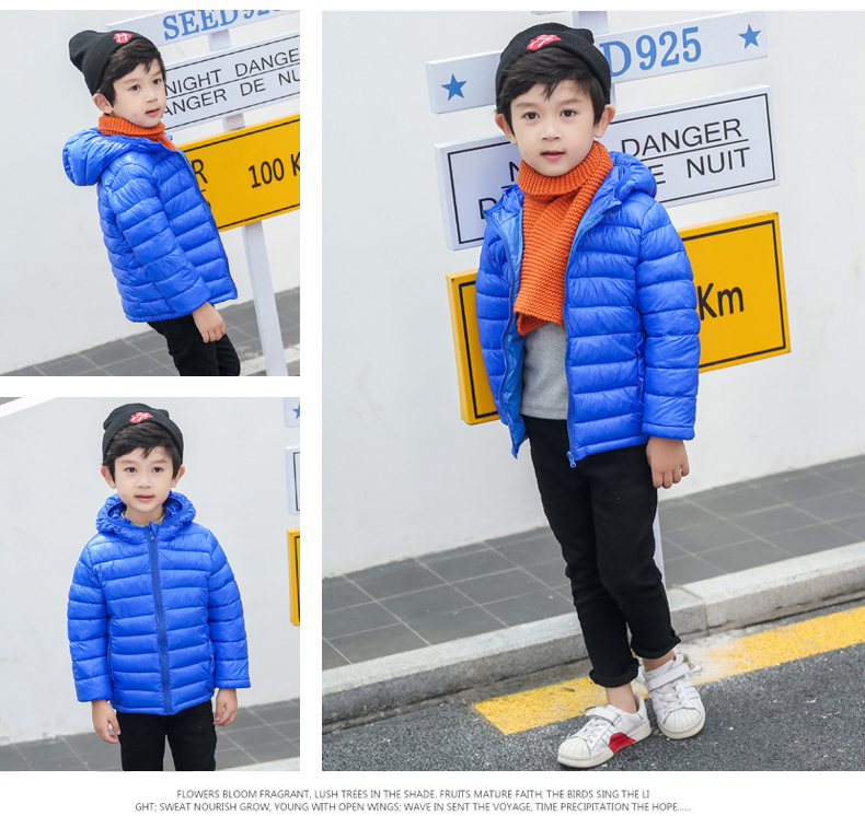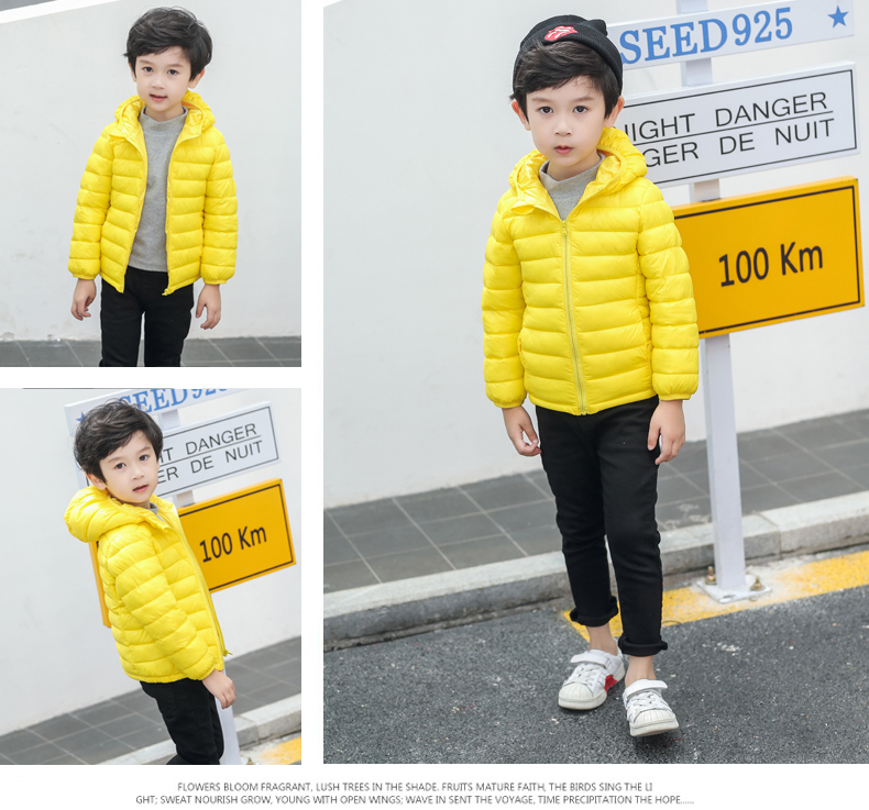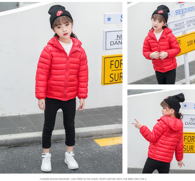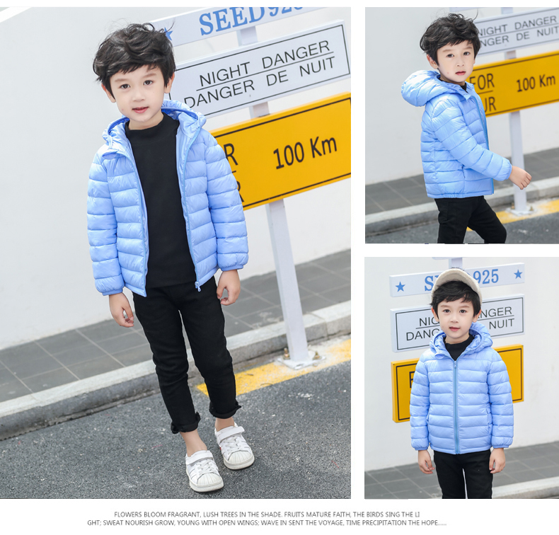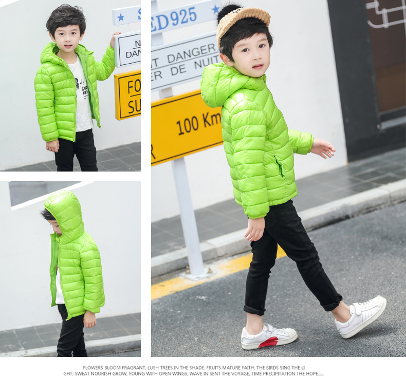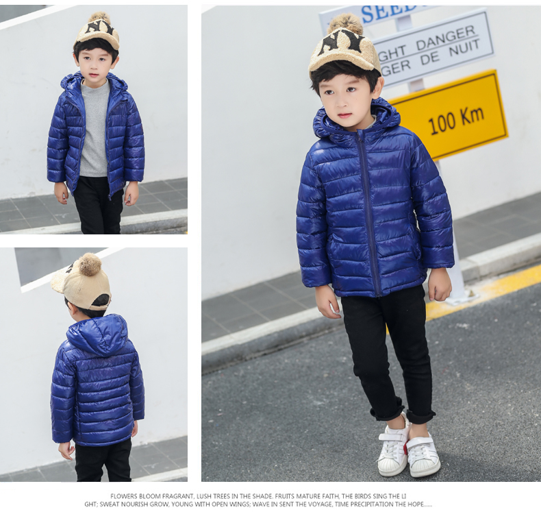 儿童轻薄款羽绒棉服,100~150CM,男女宝同款!轻薄保暖,透气性好,精工细作,韩版时尚,亮丽多色,纯色连帽设计