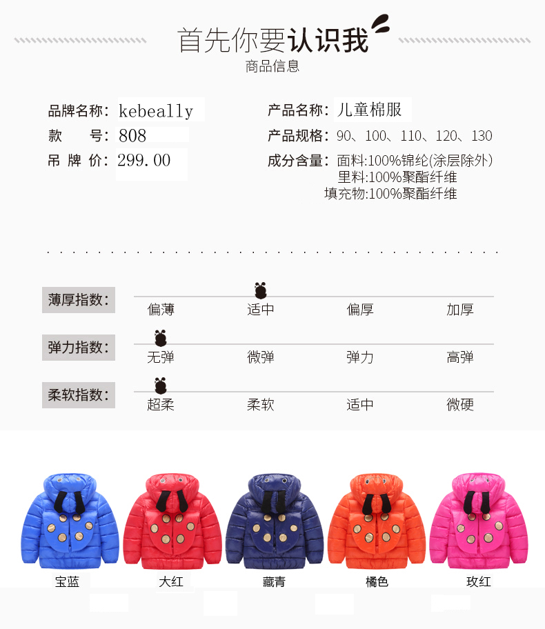 儿童保暖太空棉哈衣。轻薄时尚,超可爱风趣,防风保暖,柔软舒适,时尚精致,羽绒服专用面料,防风防跑棉!