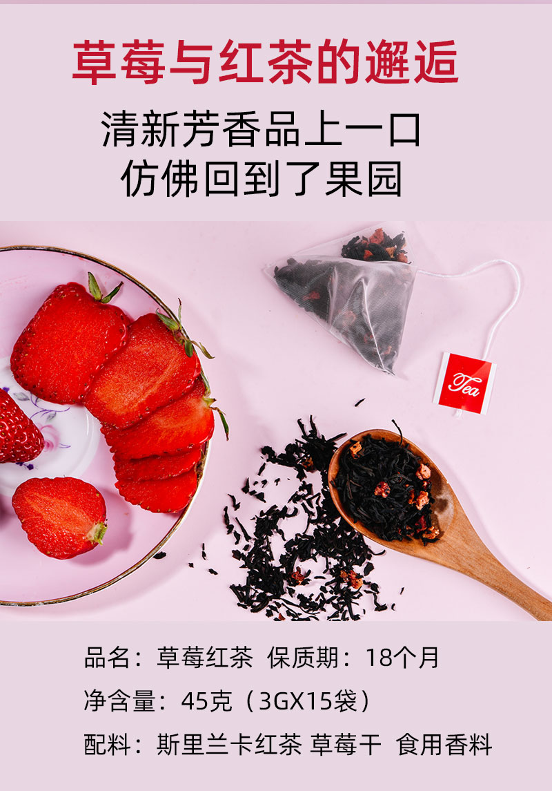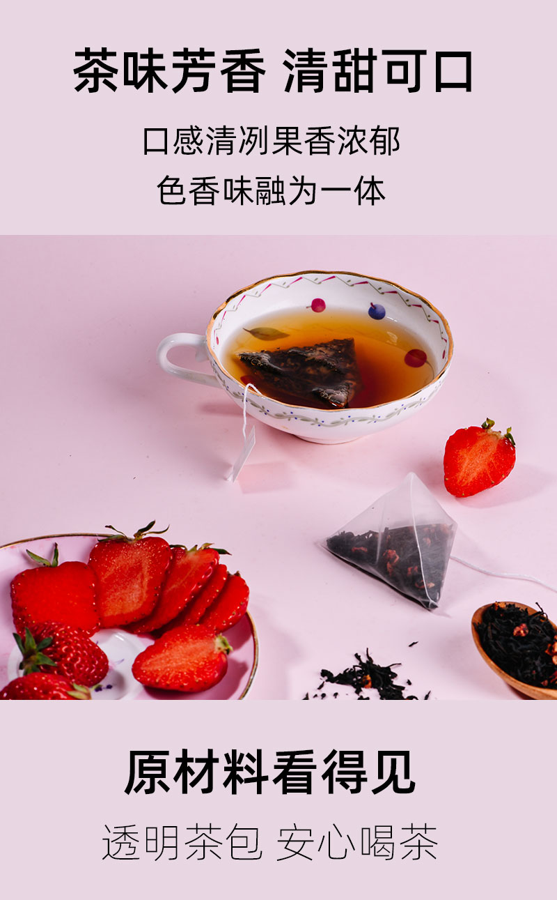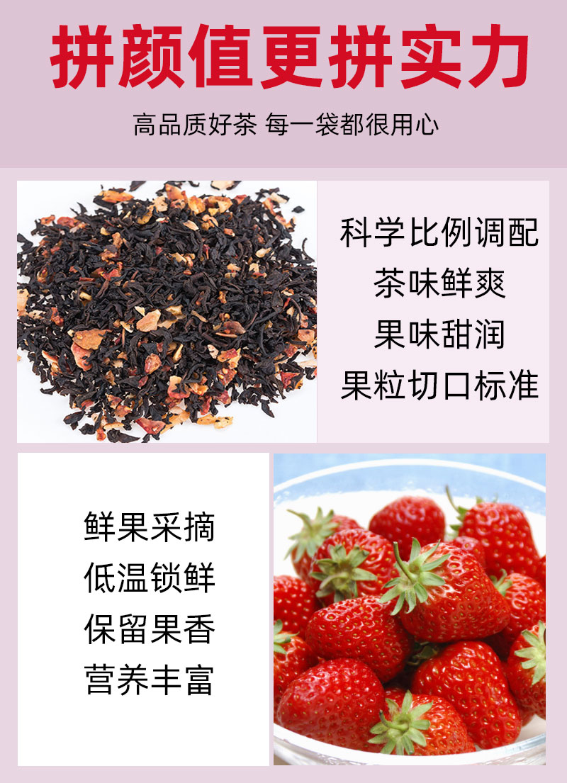 草莓红茶花茶组合袋装茶叶奶茶店网红水果茶包花果茶草莓茶泡水喝