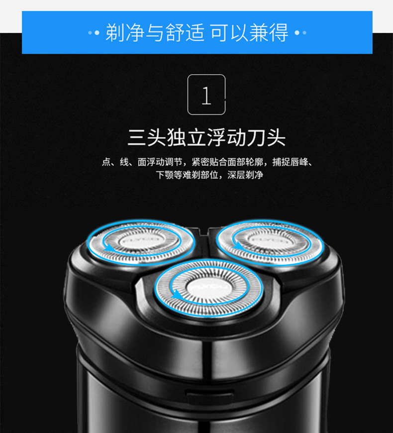 飞科全身水洗智能剃须刀男充电式刮胡刀 大额60元券后【79元】包邮秒杀 备注送1个备用刀片 全身水洗,三头浮动贴面剃须,智能防夹须,充电显示,自动研磨刀头,弹出式修剪鬓刀,超长待机,默认中通圆通