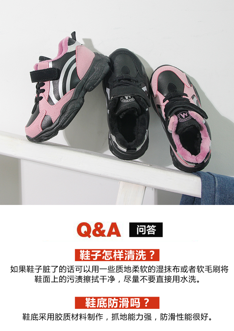 皮面防水,加绒保暖,舒适内里,防滑鞋底,冬季必备~便捷魔术贴开合,方便穿脱,个性潮流。