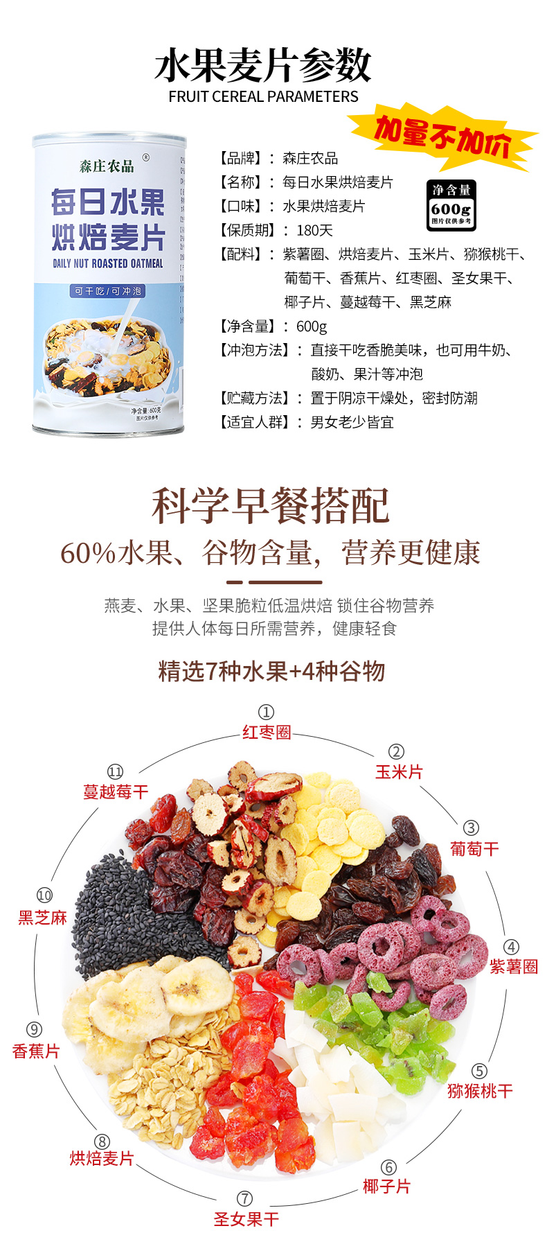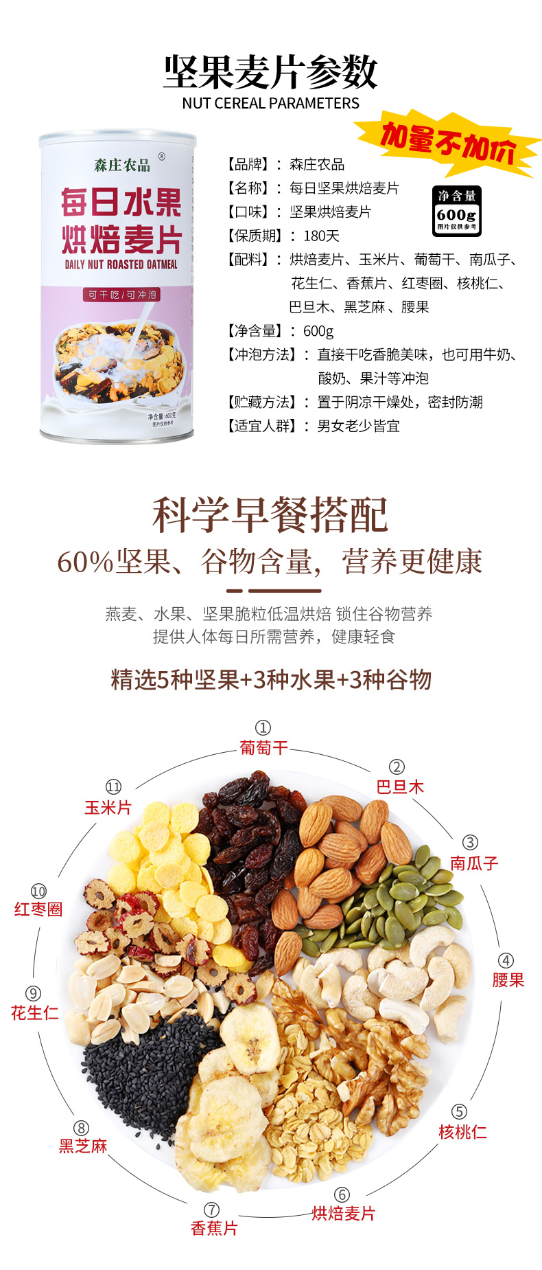 森庄农品麦片早餐速食懒人食品水果坚果燕麦片即食冲饮无糖无脱脂