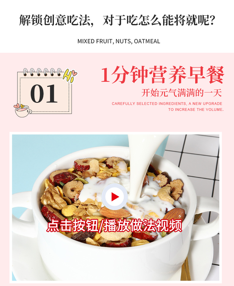 【精选上好7种水果+4种谷物】综合水果燕麦片,科学黄金配比,搭配各种水果坚果混合,蕴含丰富膳食纤维,口感丰富,不含反式脂肪酸,营养美味又健康。早餐一大杯,活力一整天【赠运费险】