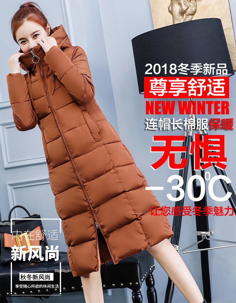 2019冬季新款韩版羽绒棉服女中长款过膝东大门棉衣收腰连帽棉袄潮