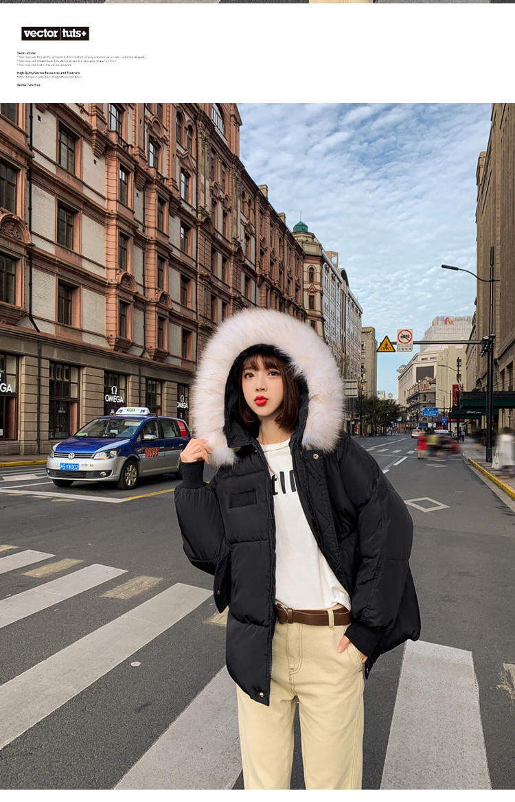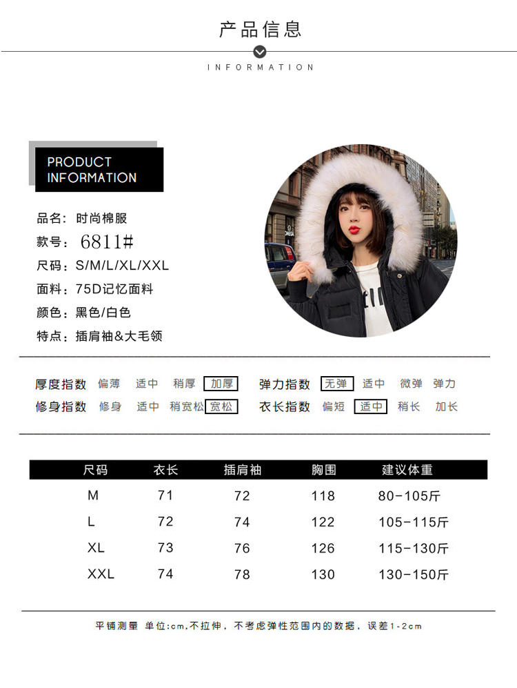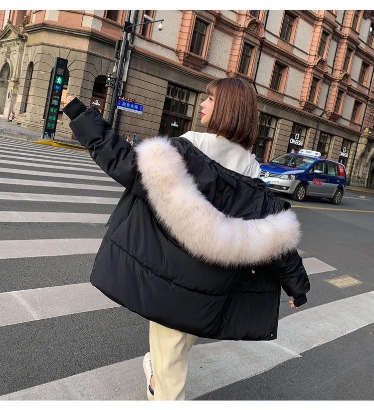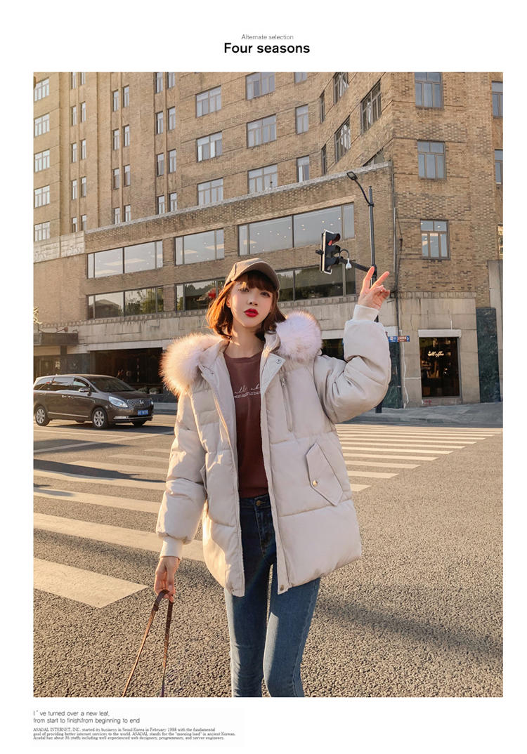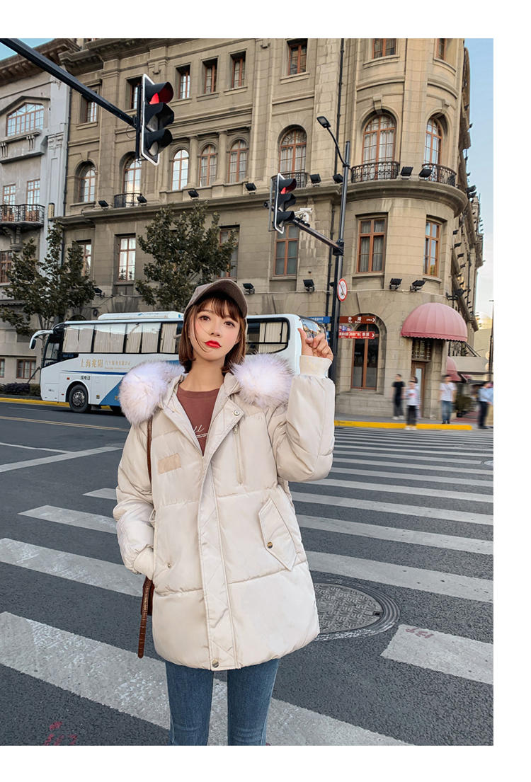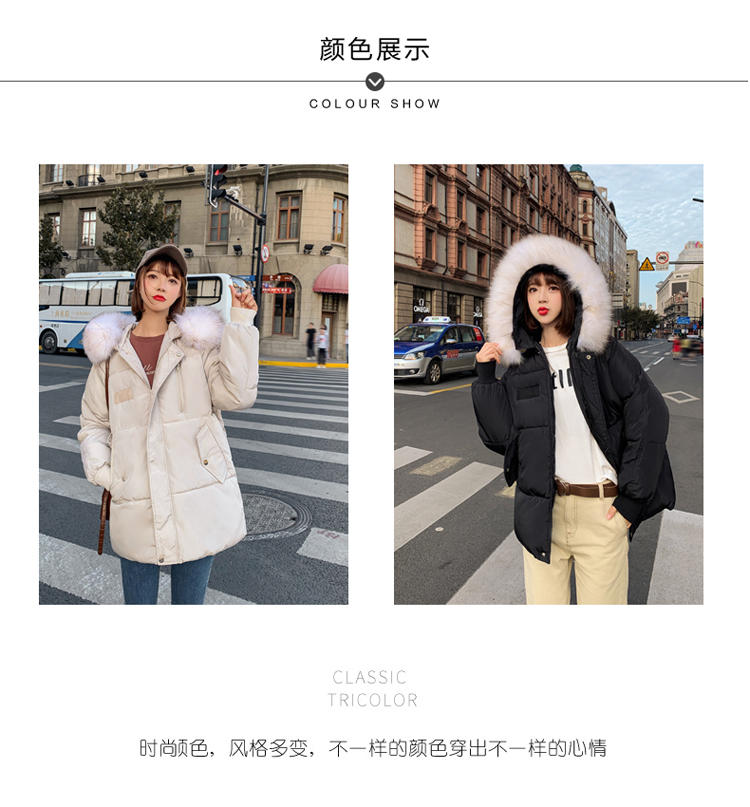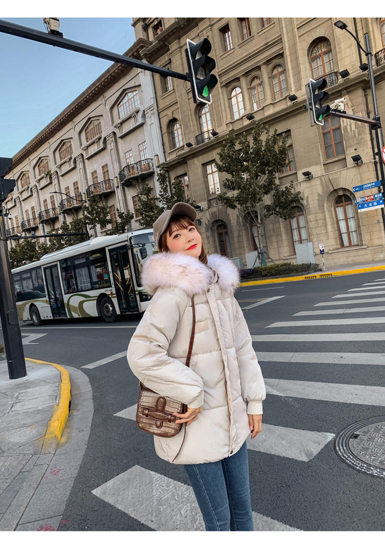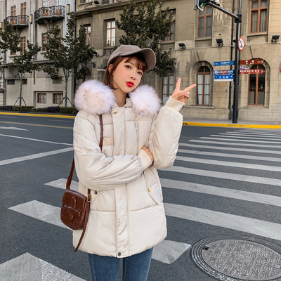 中长款棉衣女2019冬季新款韩版修身羽绒棉服连帽大毛领棉袄外套潮