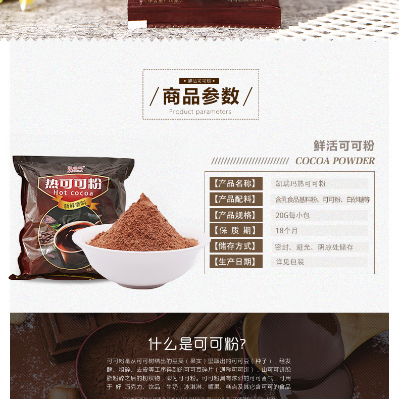 凯瑞玛可可粉热巧克力coco粉冲饮速溶早餐烘焙蛋糕奶茶店专用原料