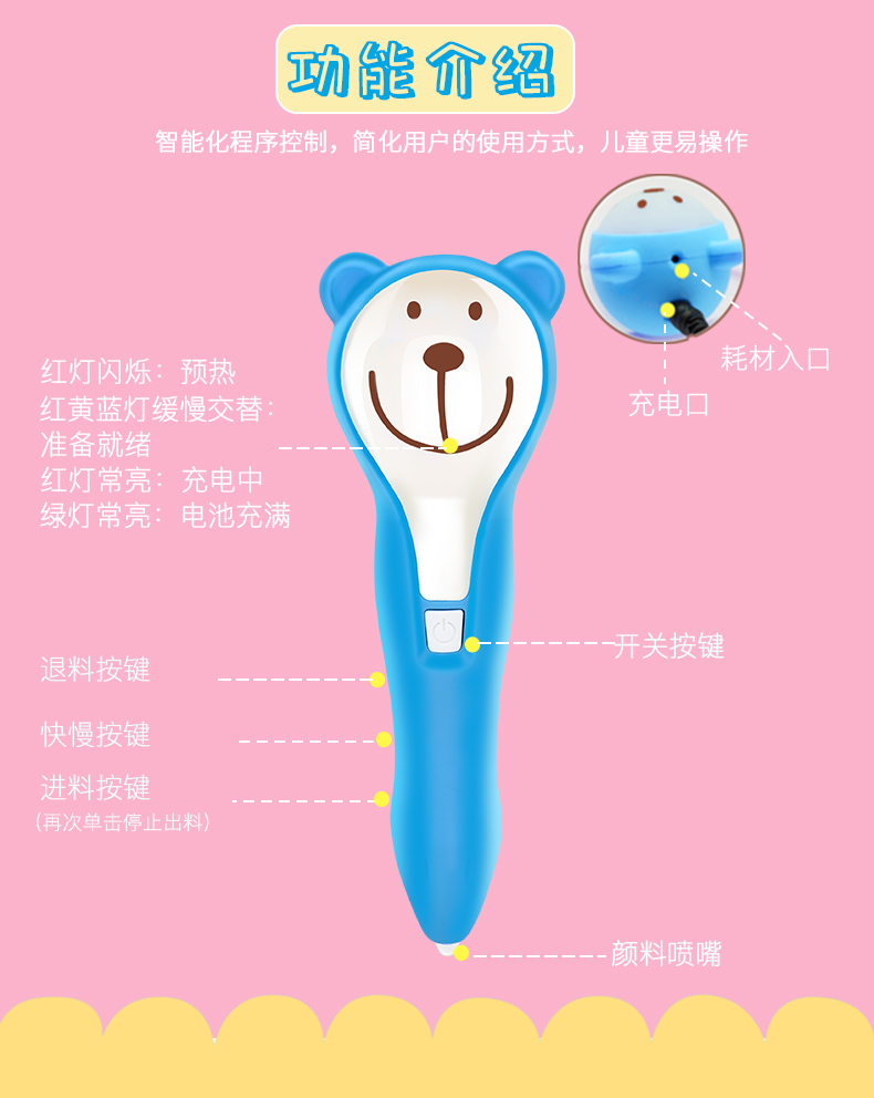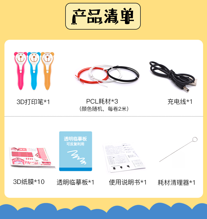 3d低温pla耗材打印笔,采用环保材料,画笔丰富,上色均匀,颜色很鲜艳,送礼有面子~每一只笔都用心制造~激发绘画创造力,描绘七彩童年~【赠运费险】
