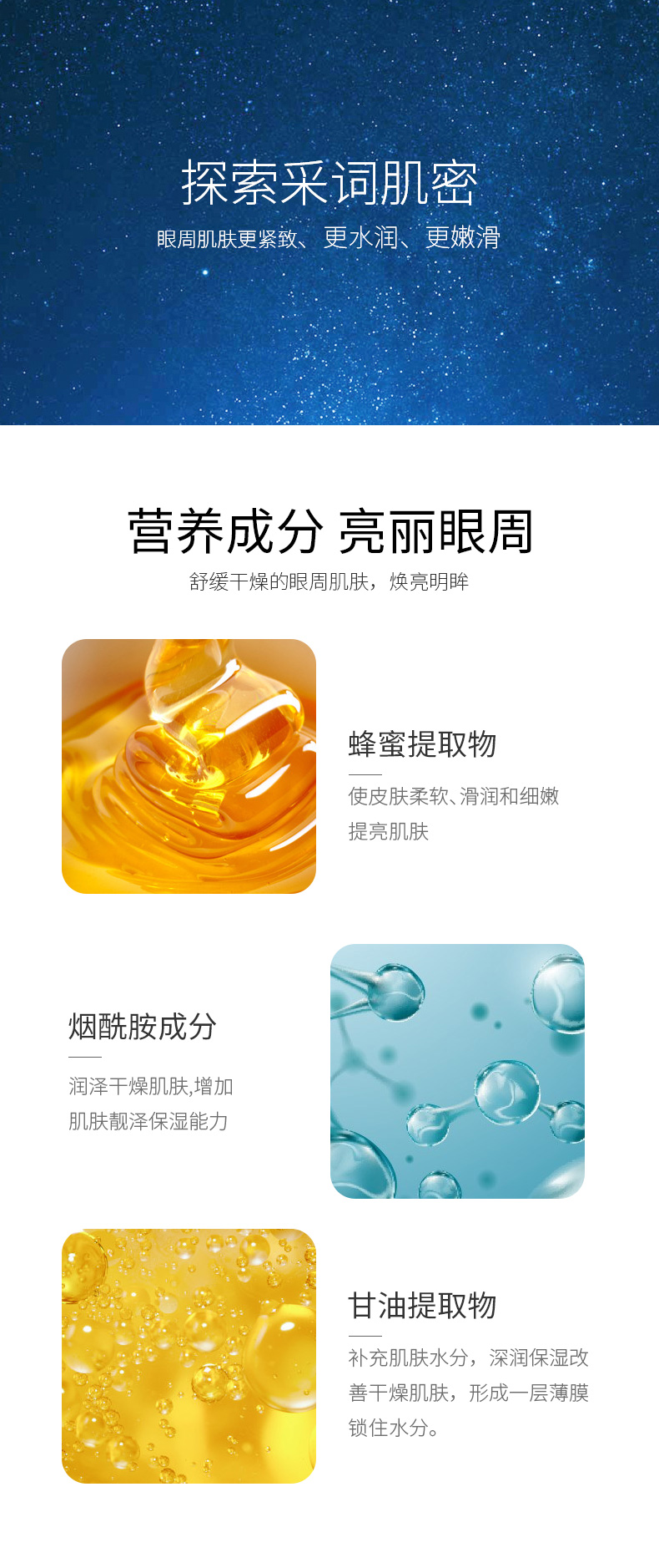 采词玻尿酸晶润眼膜淡化细纹消黑眼圈抗皱纹去眼袋补水保湿女男士